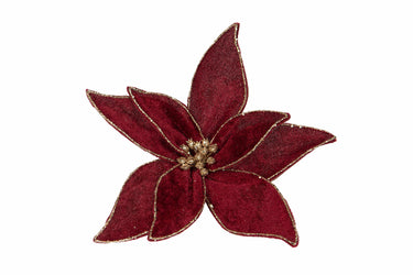 Samettinen punainen joulutähti koriste hurmaa kultaisilla yksityiskohdillaan. Se kiinnittyy kätevällä metalliklipsillä ja viimeistelee joulukuuseen, kranssin tai paketin koristelun.