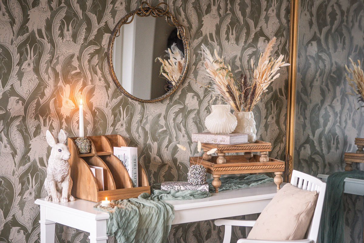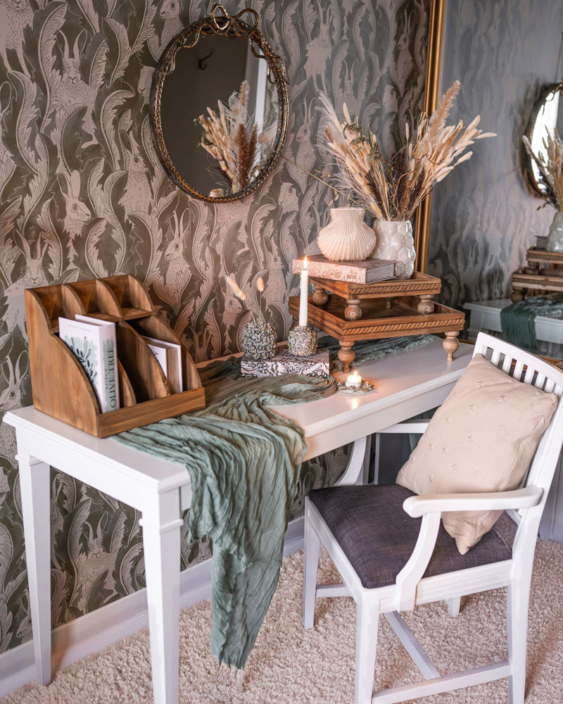 Valkovihreä oliivipuukuvioinen kirjalaatikko | 16 x 5 x 24 cm | Olive Tree
