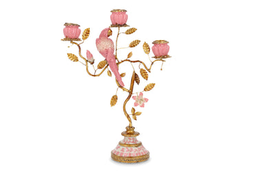 Vaaleanpuna-kullansävyinen papukaija-kynttelikkö | 23 x 9 x 32cm