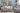 Sini-valkoraidallisessa sohvassa on 5 irtotyynyä istuintyynyjen lisäksi.