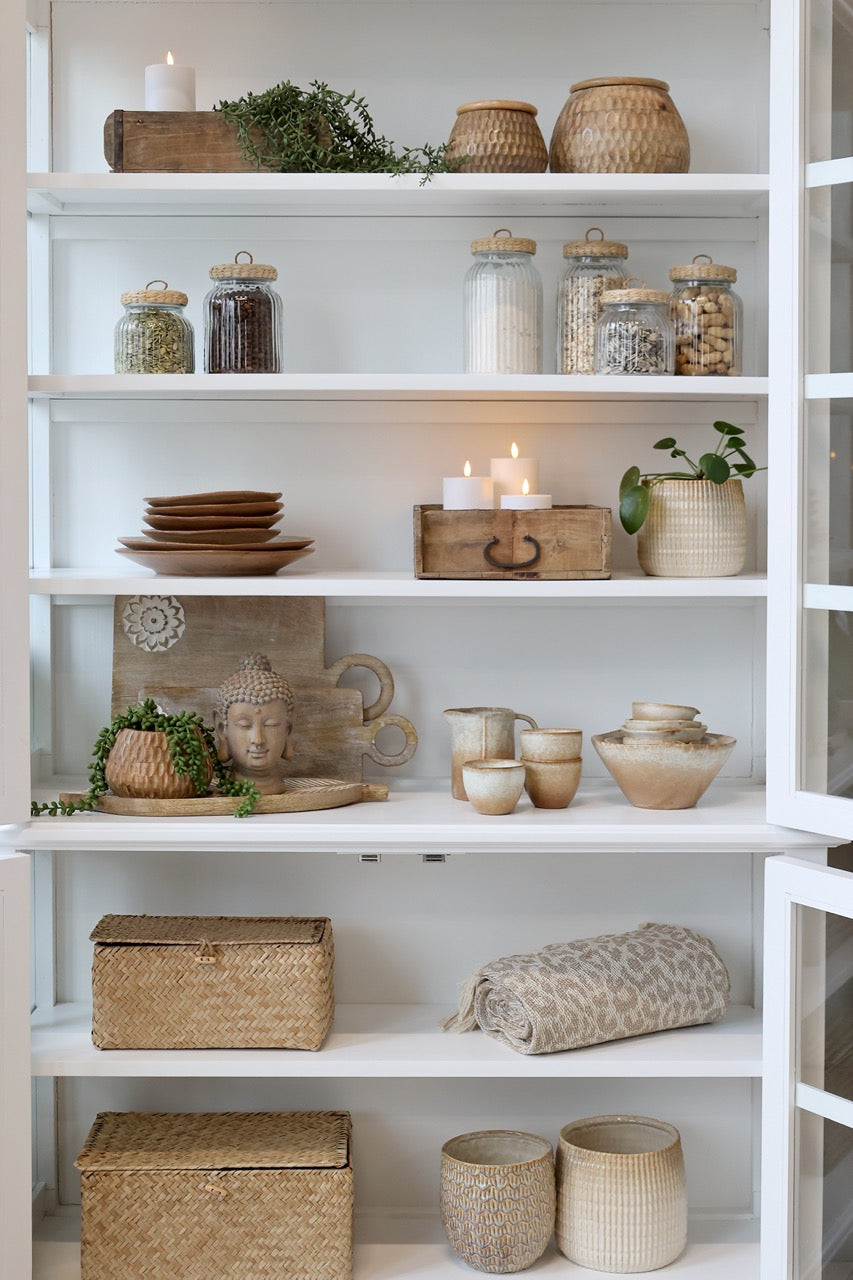 Marseille-vitriinikaappi on valmistettu kestävästä poppelipuusta ja siinä on hieno valkoinen lakkapinta, joka tuo huoneeseen kevyen ja ilmavan tunnelman.