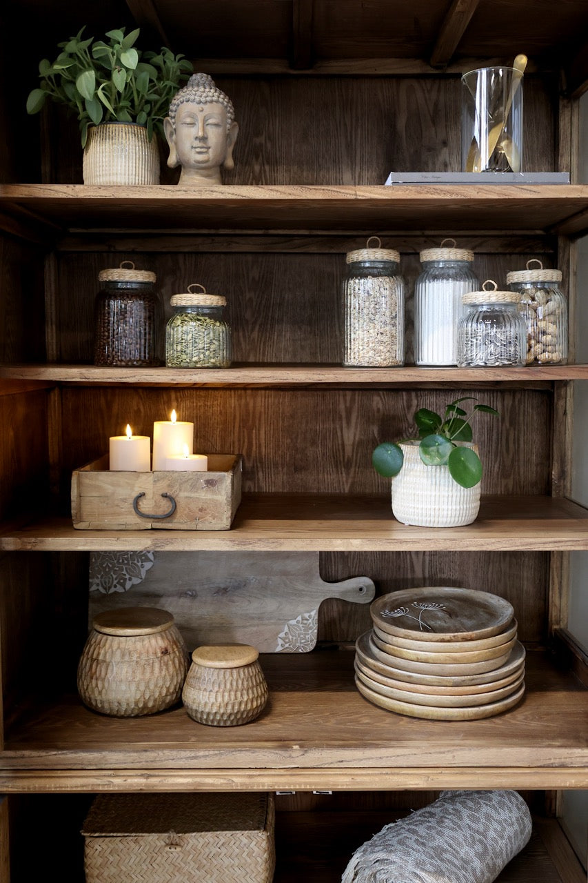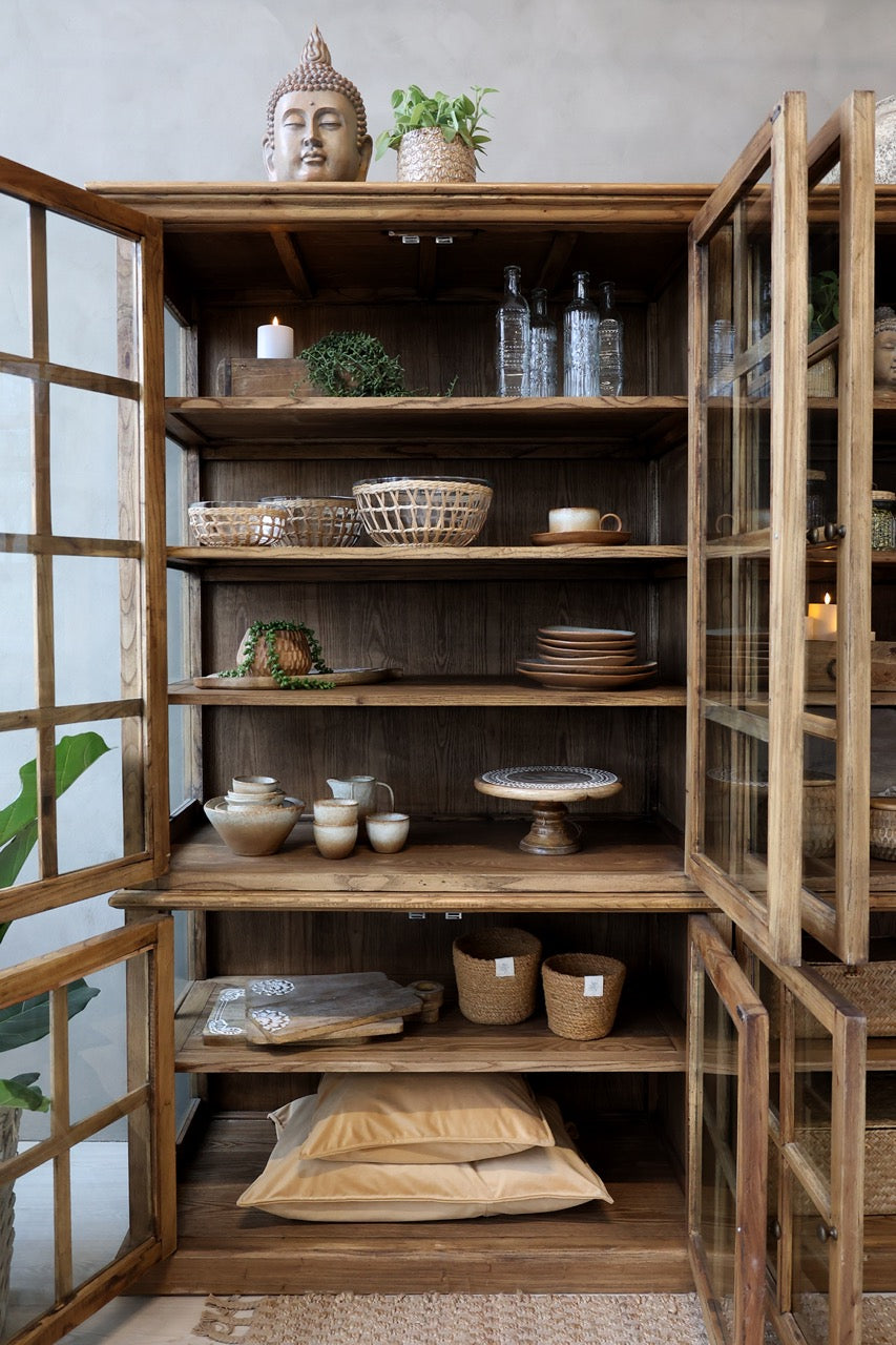 Suuri Marseille-vitriinikaappi on valmistettu kestävästä poppelipuusta. Lämpimän ruskea puu antaa vitriinille maalaisromanttisen ilmeen.