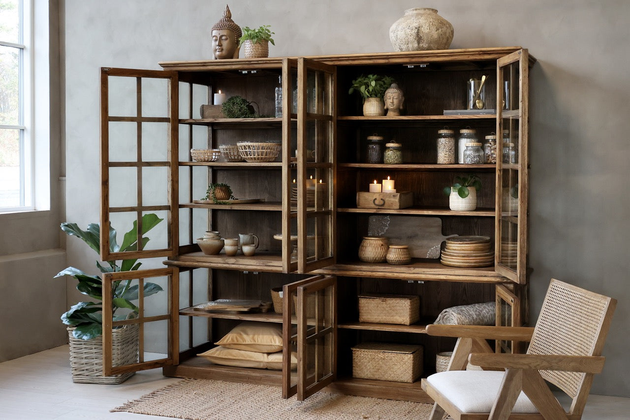Puunvärinen lasivitriini | 220 x 55 x 195 cm | Marseille