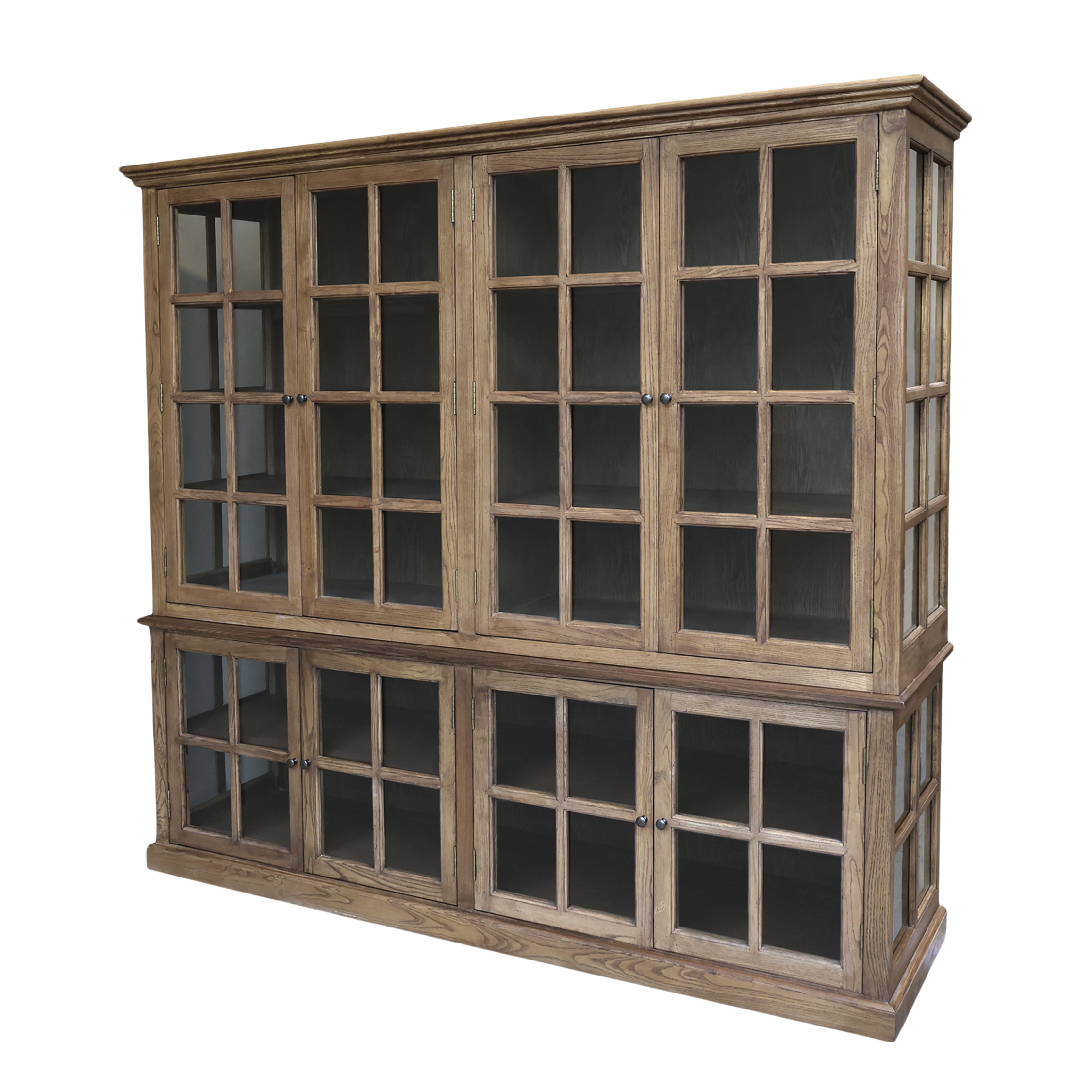 Vitriinissä on kahdeksan lasiovea ja lasiset päädyt.