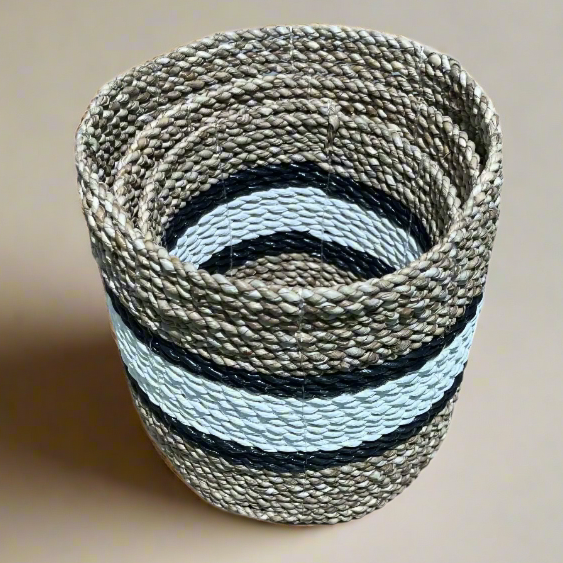 Indoneasiassa meriheinästä valmistetut kauniit korit voi pinota sisäkkäin. Korit ovat napakoita, pitävät pyöreän muotonsa ja niiden pohja on täysin litteä.