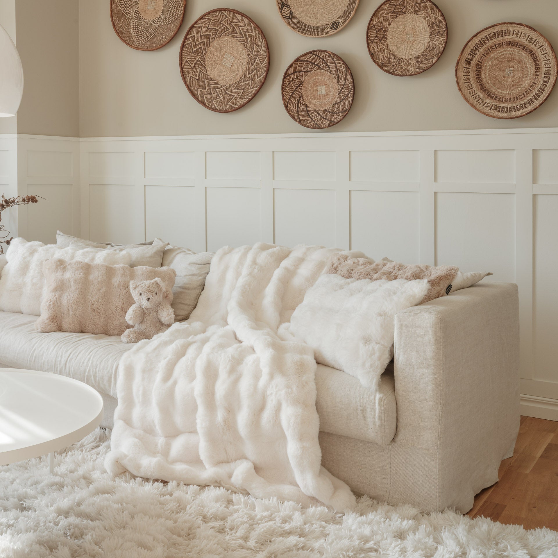 Valkoinen keinoturkkinen torkkupeitto | 220 x 140cm | Misty