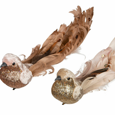 Upeat höyhenillä pörhistelevät ja glitterissä säihkyvät lintuset ovat upeita kuusenkoristeita. Näiden lintujen höyhenissä on loppusilauksena kiiltäviä paljetteja.