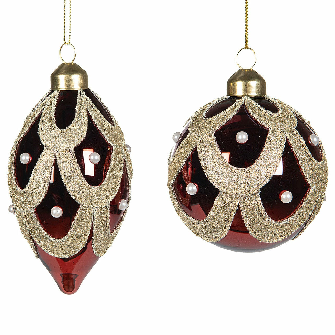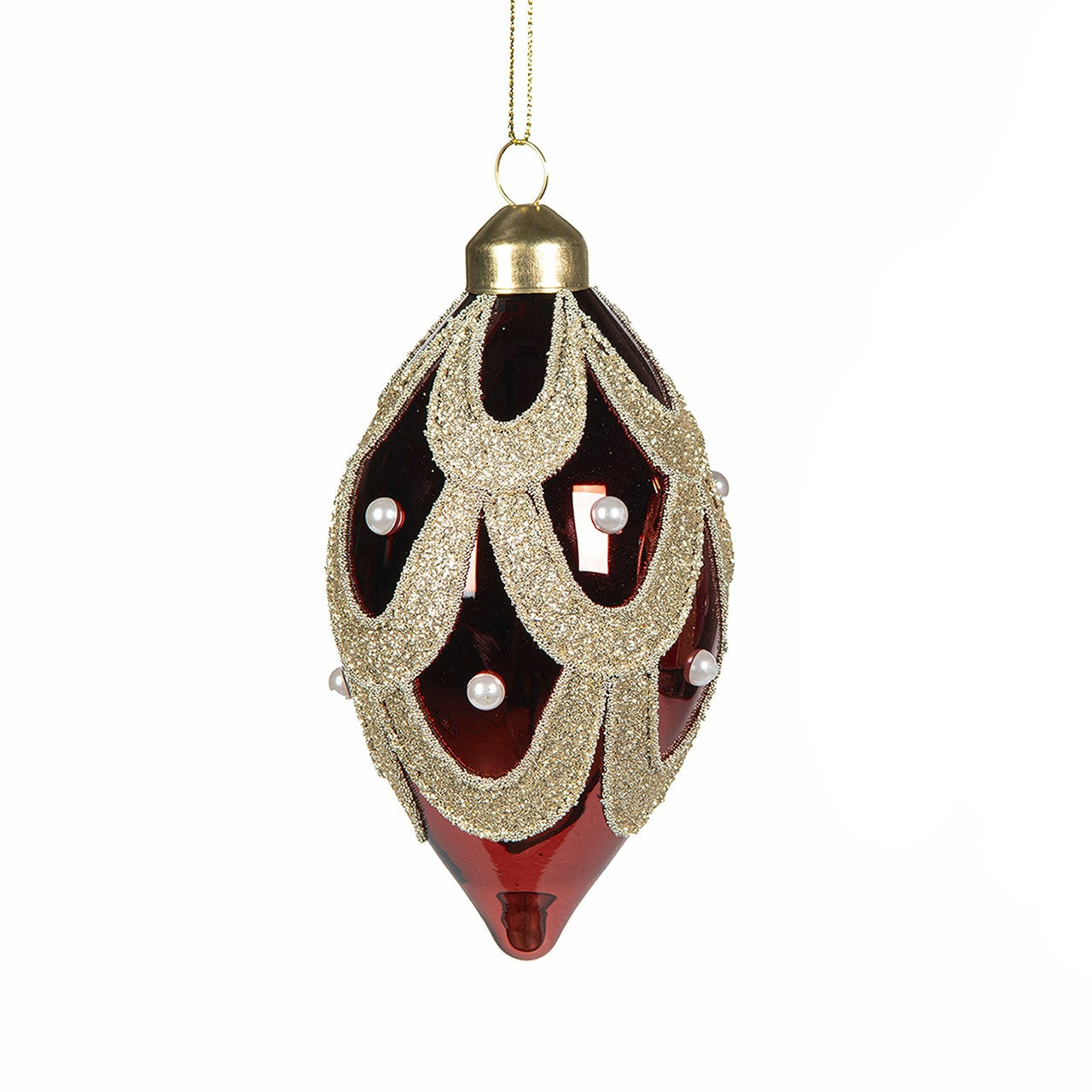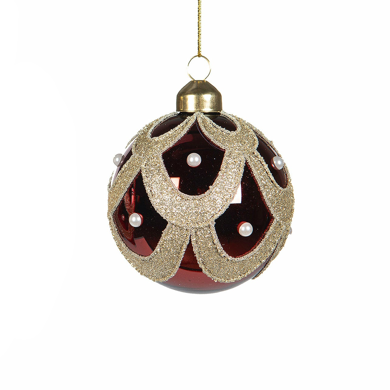 Lasinen puna-kultainen helmikoristeltu joulupallo | Leonore