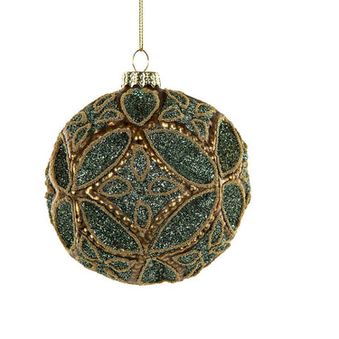 Lasinen joulupallo turkoosi ja kulta | Ø10cm
