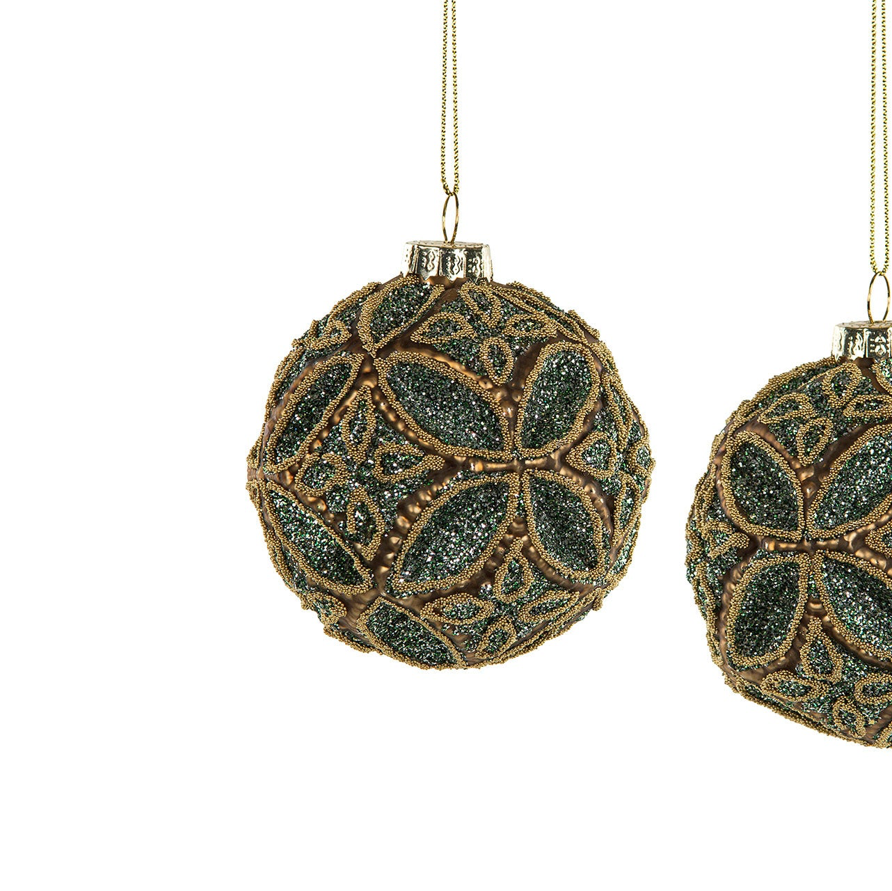 Lasinen joulupallo turkoosi ja kulta | Ø8cm