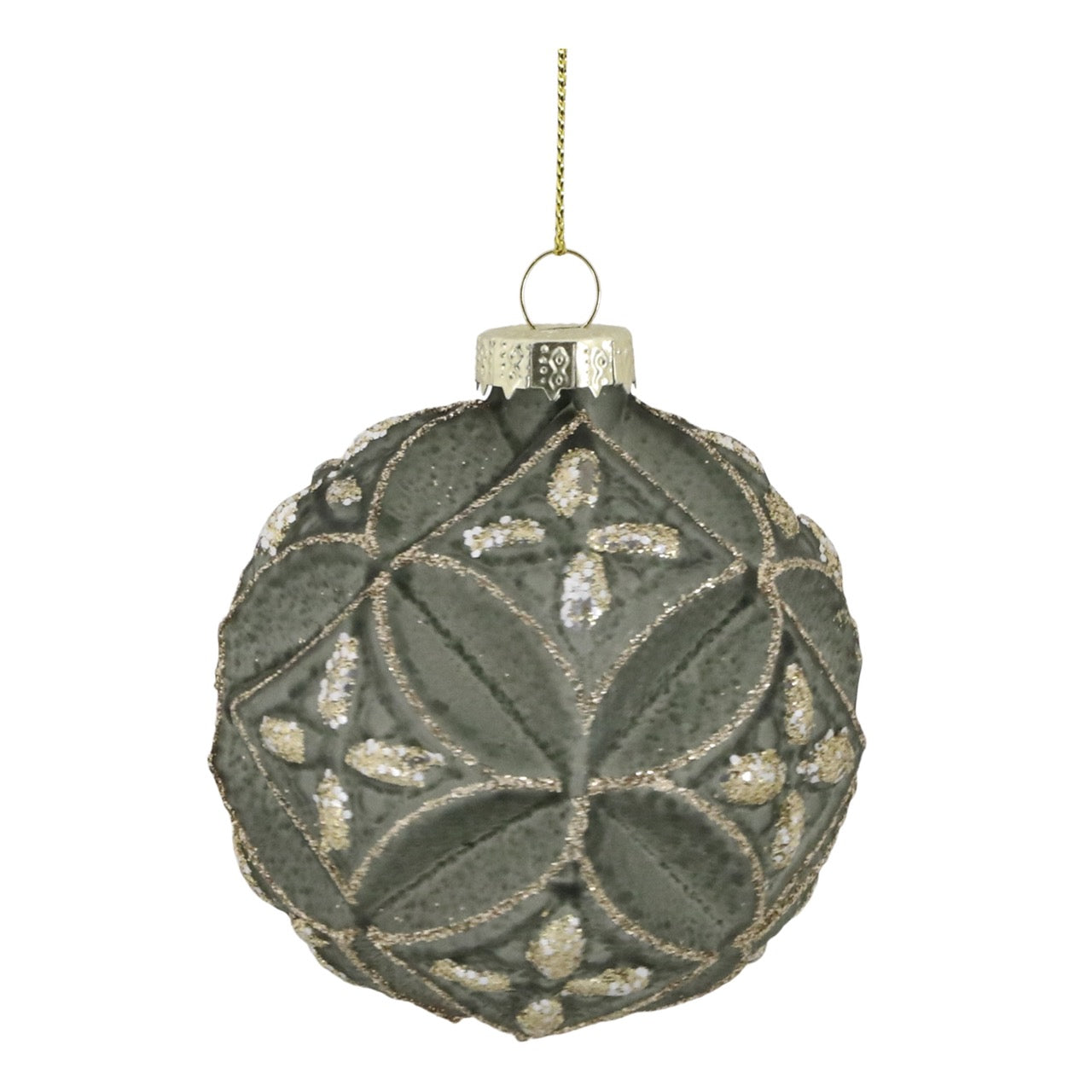 Kohokuvioitu vihreä lasinen joulupallo | Ø8 cm