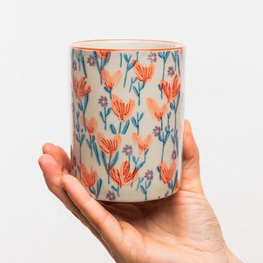 Douceur Florale-sarjan posliinisessa hammasmukissa yhdistyvät oranssi ja sininen kauniissa kukkakuvioinnissa