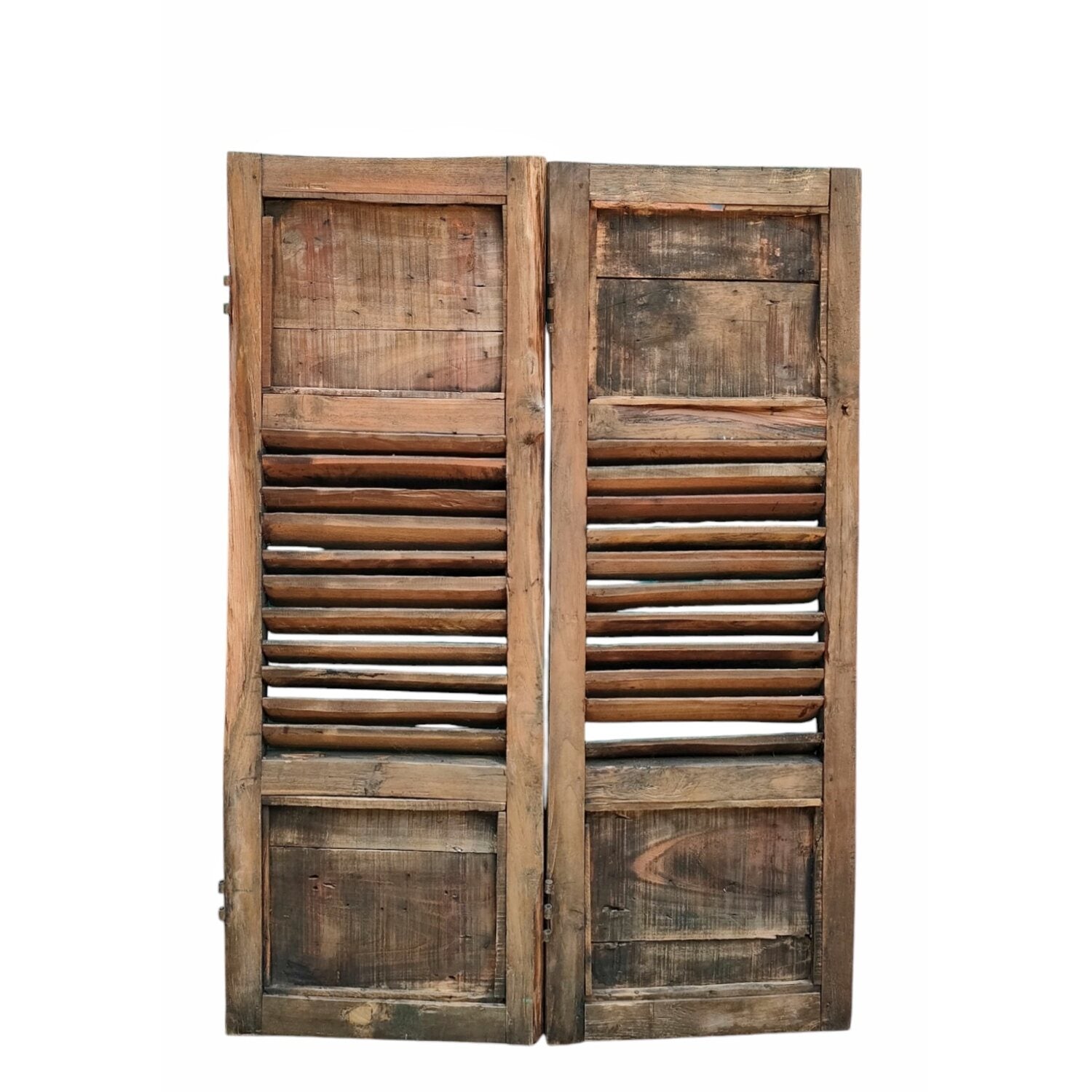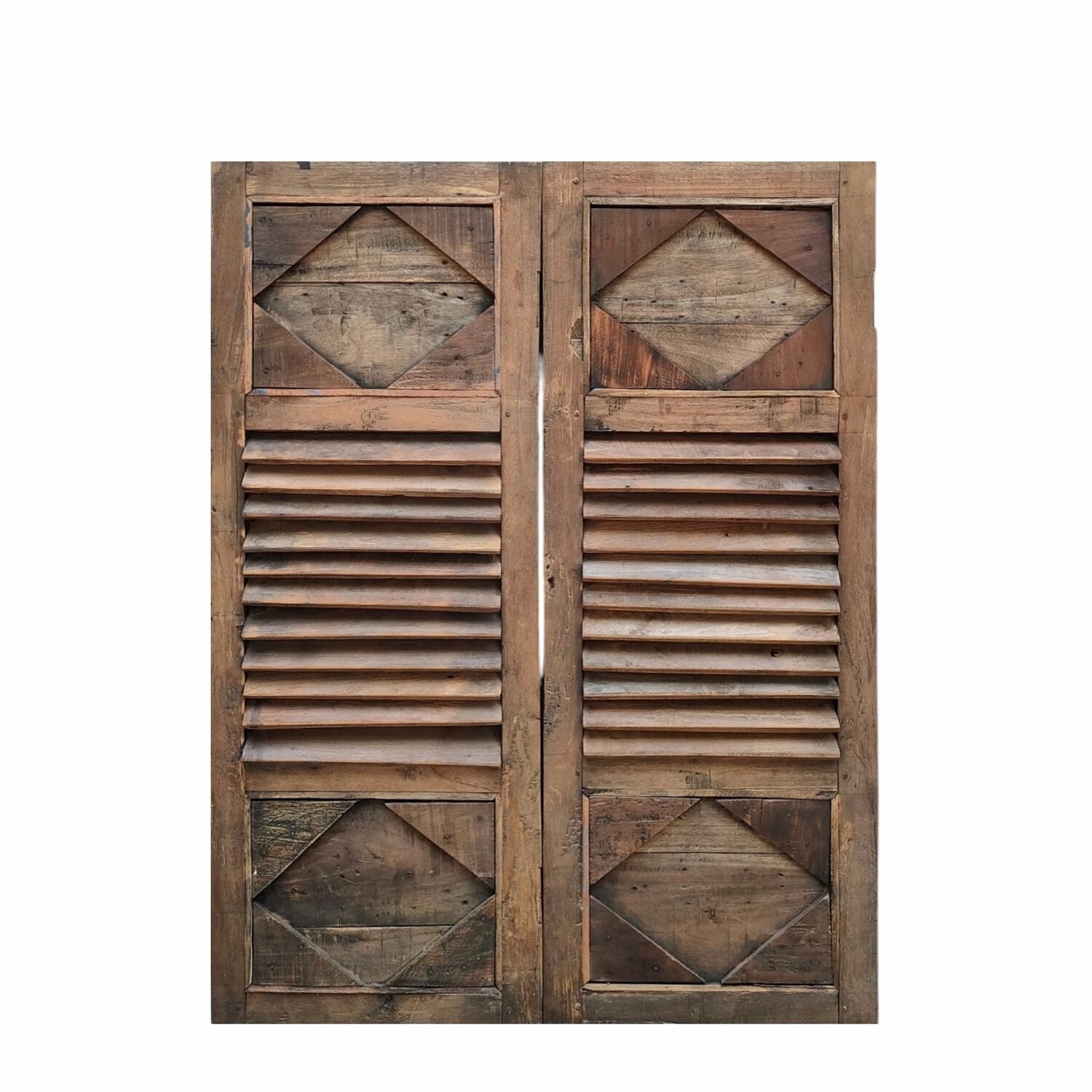 Puunväriset tiikkipuiset ikkunaluukut | 77 x 3 x 120 cm | Vintage