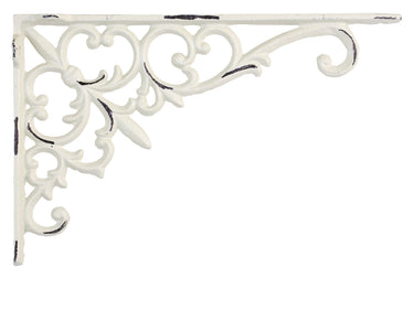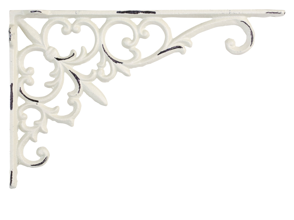 Kaunis antiikkivalkoinen hyllynkannatin maalaisromanttiseen sisustukseen ja tuomaan ripaus klassista muotokieltä moderniin sisustukseen.