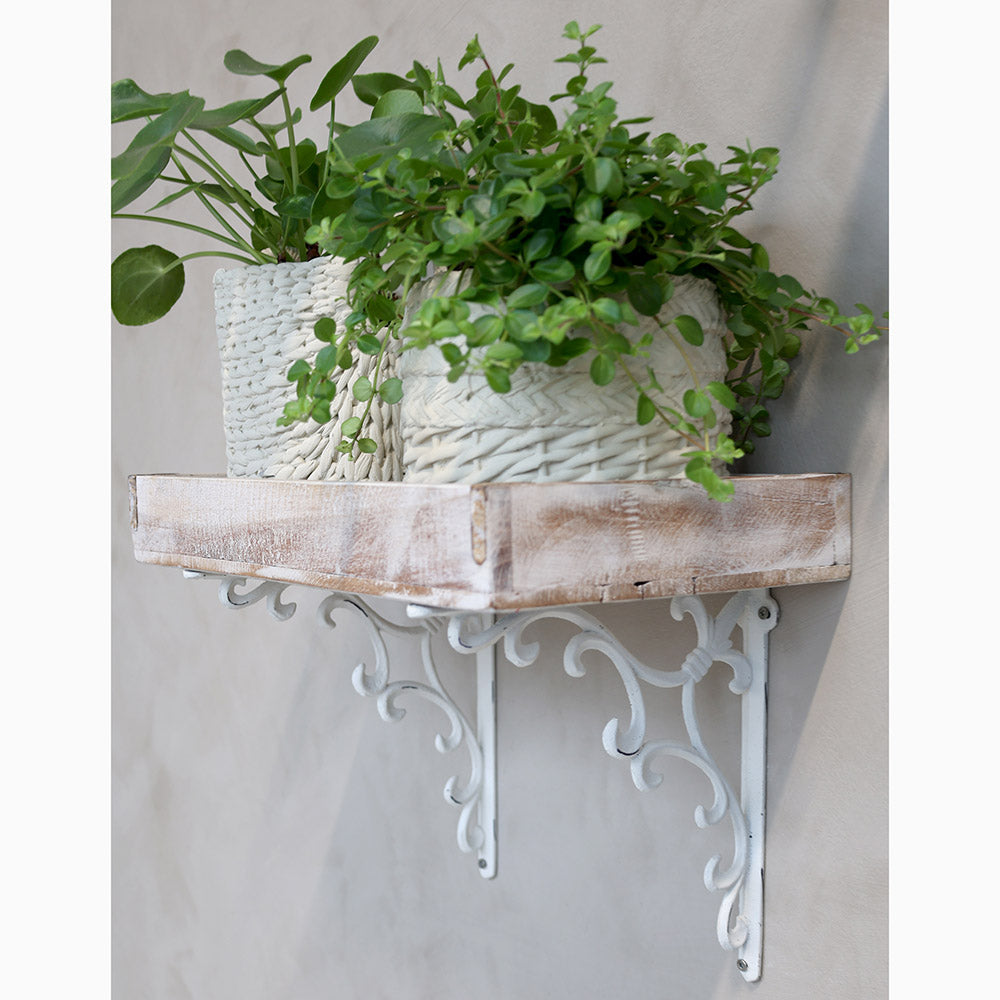 Kaunis antiikkivalkoinen hyllynkannatin maalaisromanttiseen sisustukseen ja tuomaan ripaus klassista muotokieltä moderniin sisustukseen.