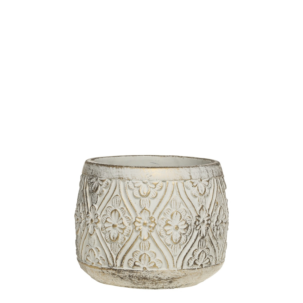 Vittel Planter w. golden pattern H13/D15.5 cm cream , Material Cement , Net Weight (kg) 1,714