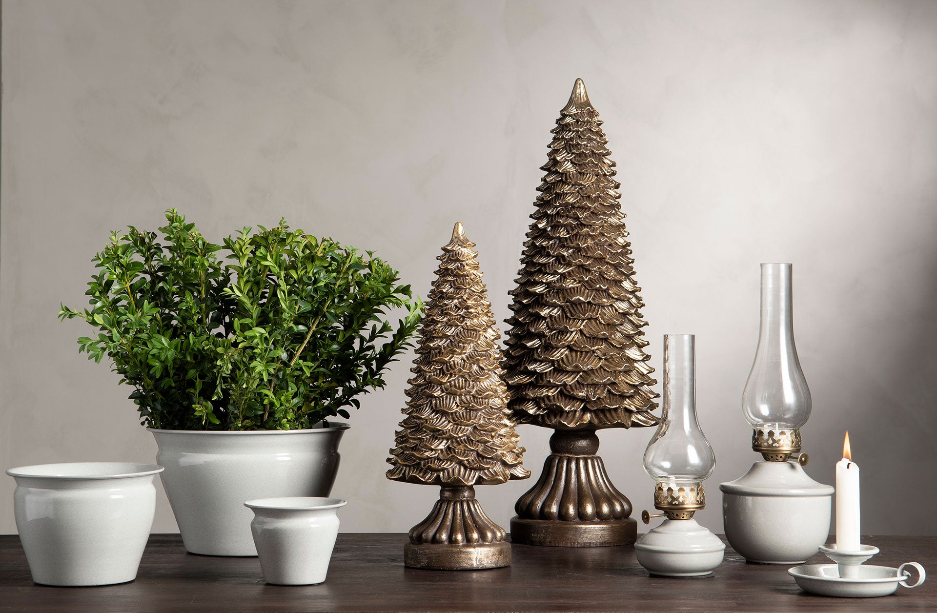 An elegant and sophisticated Christmas tree table decoration with lush branches is perfect for your Christmas decor. The decorative fir tree base is brownish and the branches are golden. By combining the Christmas tree with candles and Christmas flowers, you create a beautiful arrangement for your Christmas table. The tree is available in three different sizes.