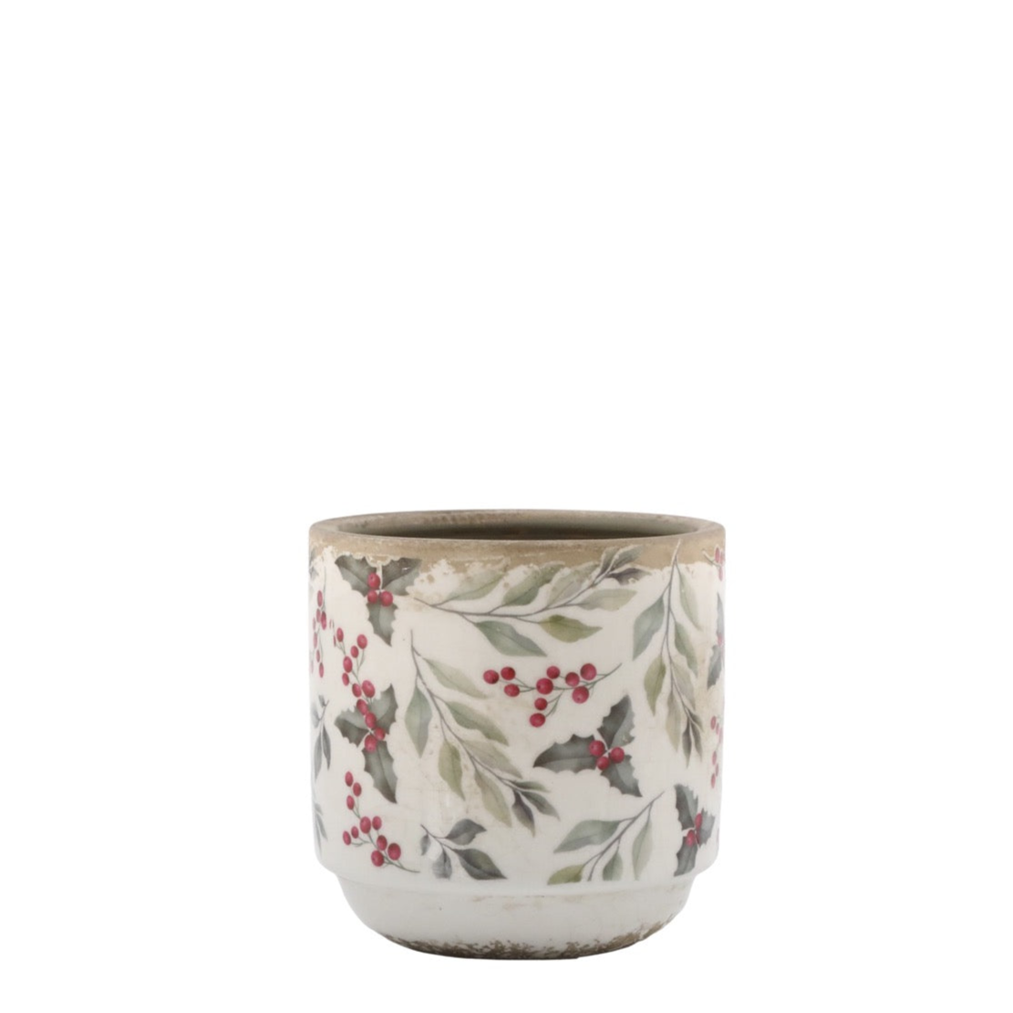 A ceramic pot decorated with beautiful laurel berries and leaves will beautify your Christmas home. They are a great way to display your Christmas flowers. The pots come in three different sizes.