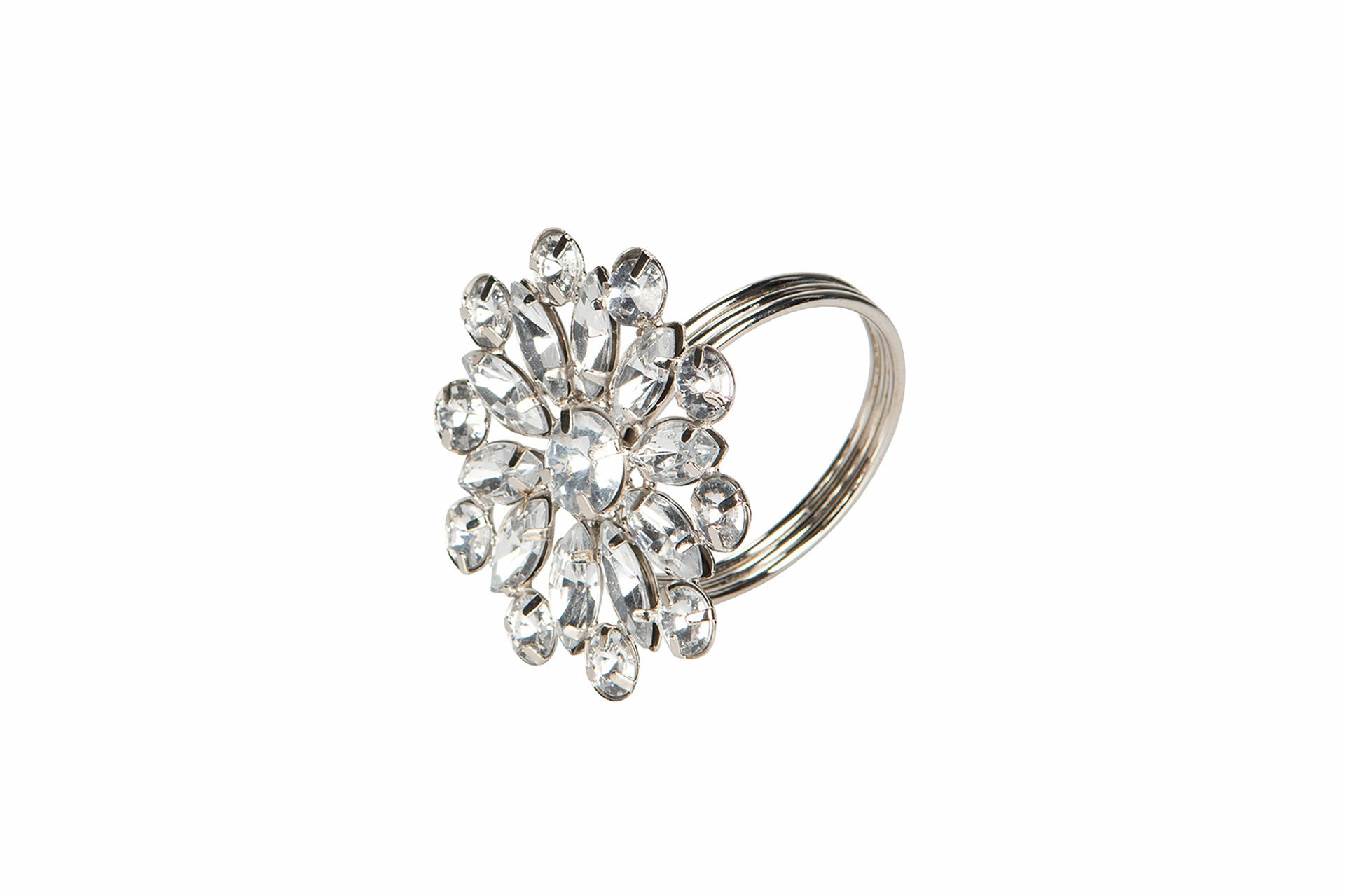 Add a touch of luxury to your festive table with this silver-colored metal and glass rhinestone napkin ring. The clear glass stones form a floral pattern. The perfect detail for Christmas tables, weddings and other festive occasions. Combine with other tableware to create an elegant and finished look. The napkin ring is available in sizes Ø5/Ø6 cm and in the colors silver/gold.