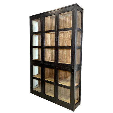 Recycled teak black glass display case | 140x35x220cm | Sicily