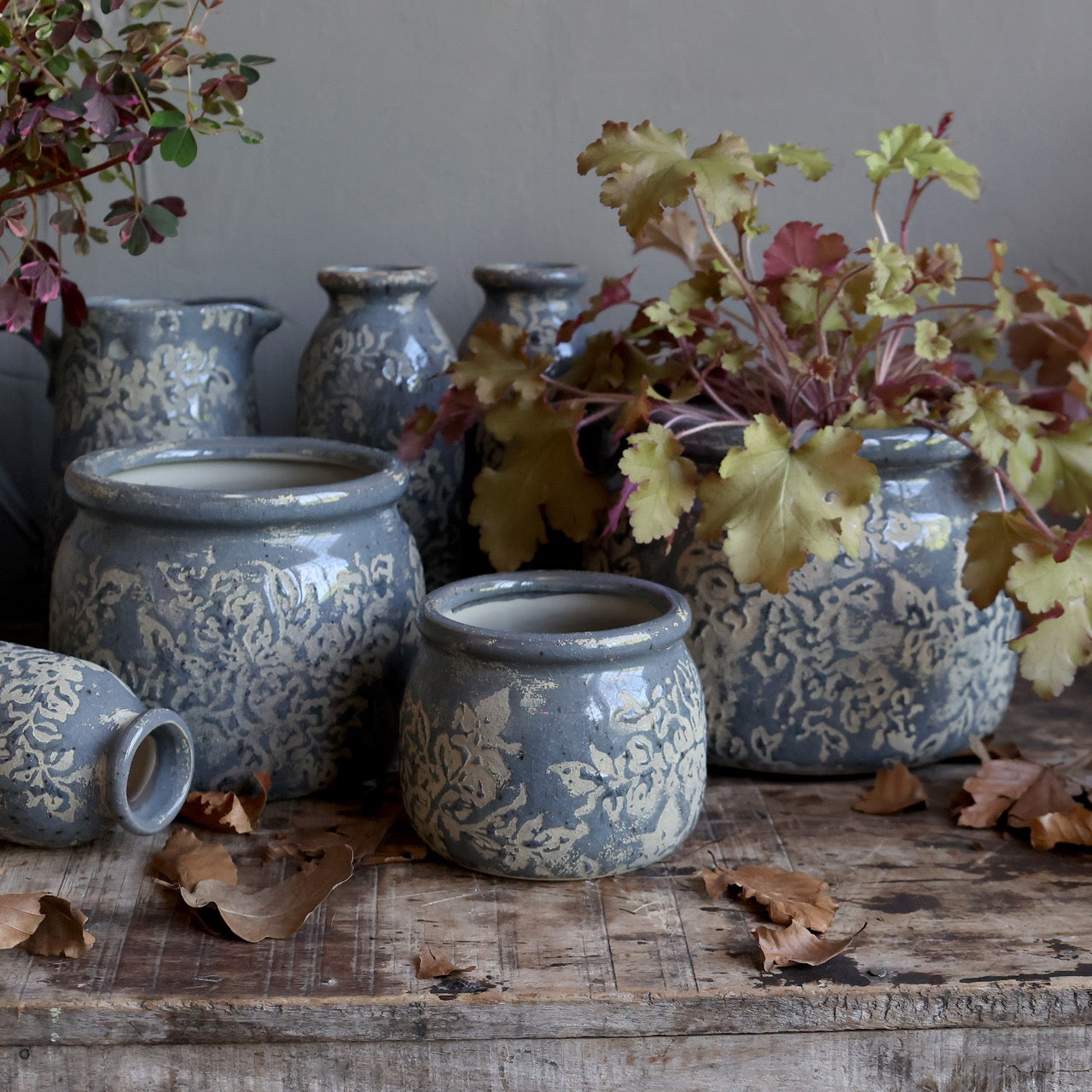 Blue-gray pot with gray floral patterns | ⌀13 x 15.5 cm | Antibes