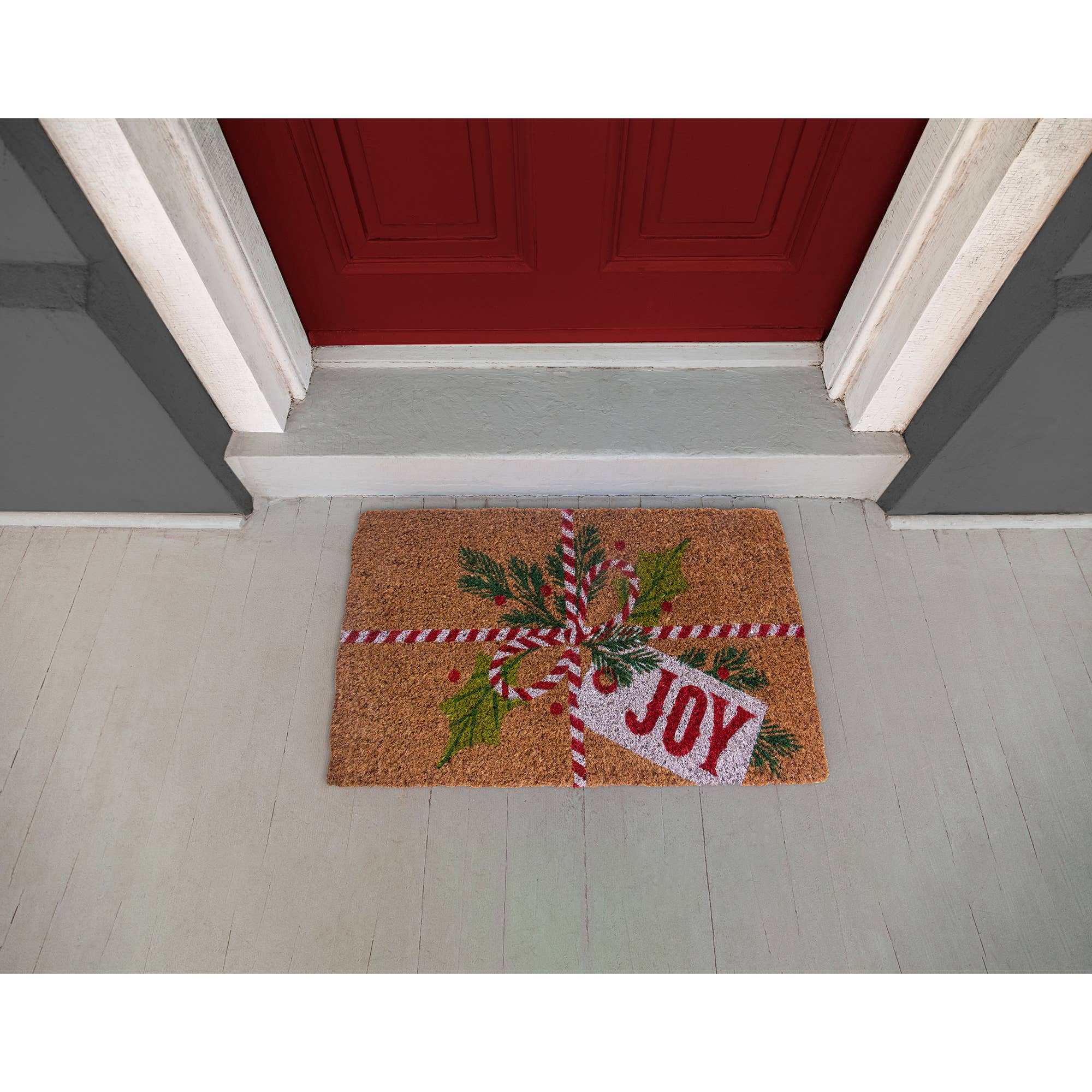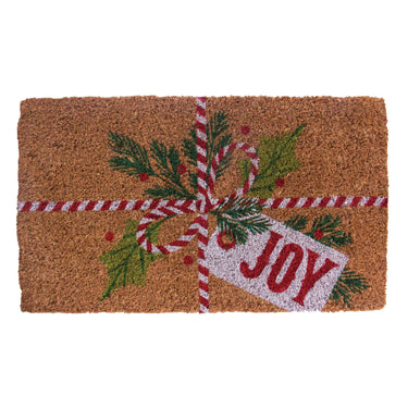 Sprigs of winter foliage are tied off with a bow, bringing Tidings of Joy to all that enter. Natural Coconut coir emulates the look of a paper-wrapped parcel embellished with baker's twine. This 45cm by 75cm doormat is made from the best-quality all-natural coir backed with durable PVC to meet the industry's highest standards of durability and hand-stenciled with eco-friendly dyes to give the design long-lasting vibrancy.
