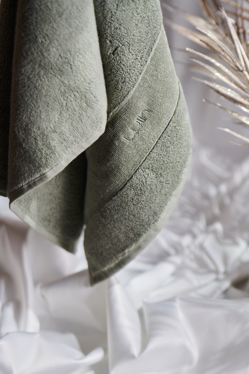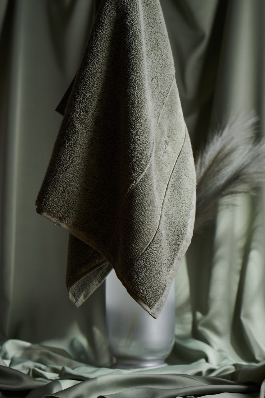 Pehmeästi murrettu vihreä luo kylpytilaan levollisen ja tyylikkään tunnelman. Luin Living pyyhkeiden ajattomat sävyt on suunniteltu yhdisteltäviksi keskenään, jotta voit luoda kotiisi persoonallisen ja harmonisen kokonaisuuden.