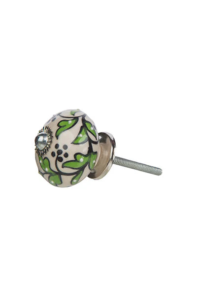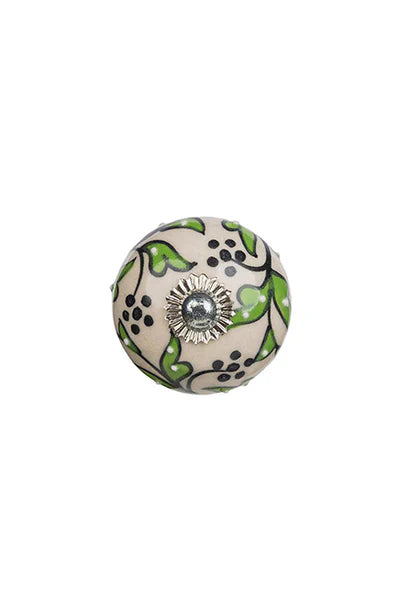 White-green knob pull porcelain | Ø4 cm