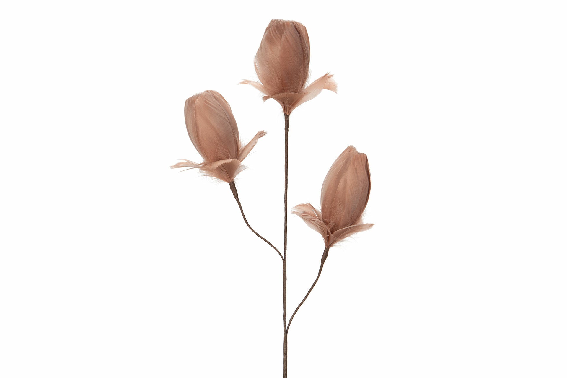 Herkän vanhan roosan sävyinen koristeoksa somistukseen. Yhdistä tähän vaikka luonnonoksia tai varpuja. 85 cm pitkässä oksassa on kolme kukkaa, jotka muistuttavat hieman nupussa olevia tulppaaneja. Kukat on valmistettu sulasta. Varren sisällä on taivutettava metallilanka.