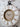 Inspired by a pocket watch, the wall clock has a wooden centerpiece framed by a wide antique white border and gold-colored Roman numerals.