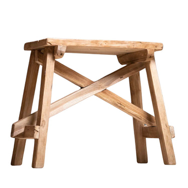 Recycled teak wood-colored stool | 50-55 x 25 x 50cm | Cross