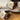 Orange and gray hand-printed floral patterns decorate the minimalist ceramic cake plate.