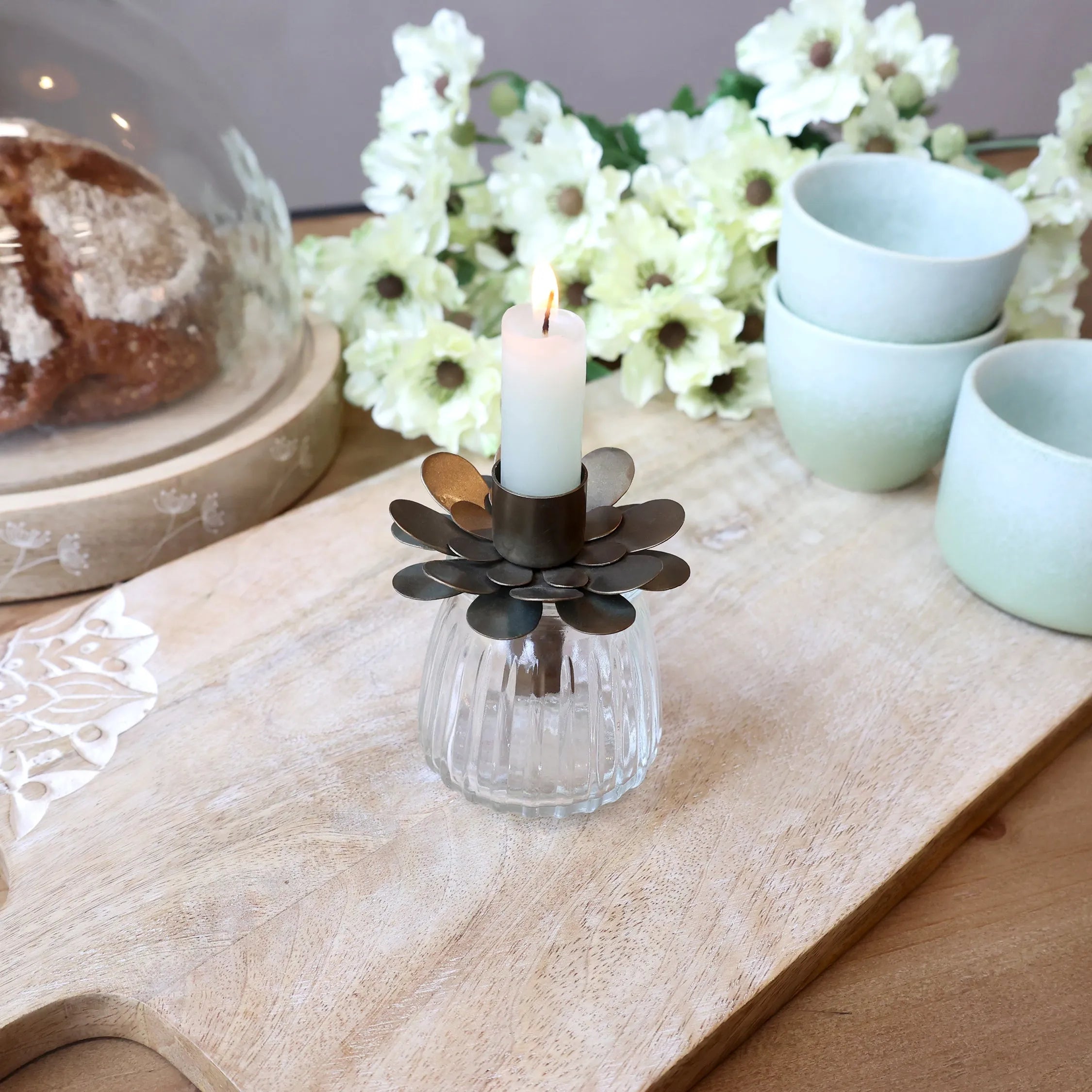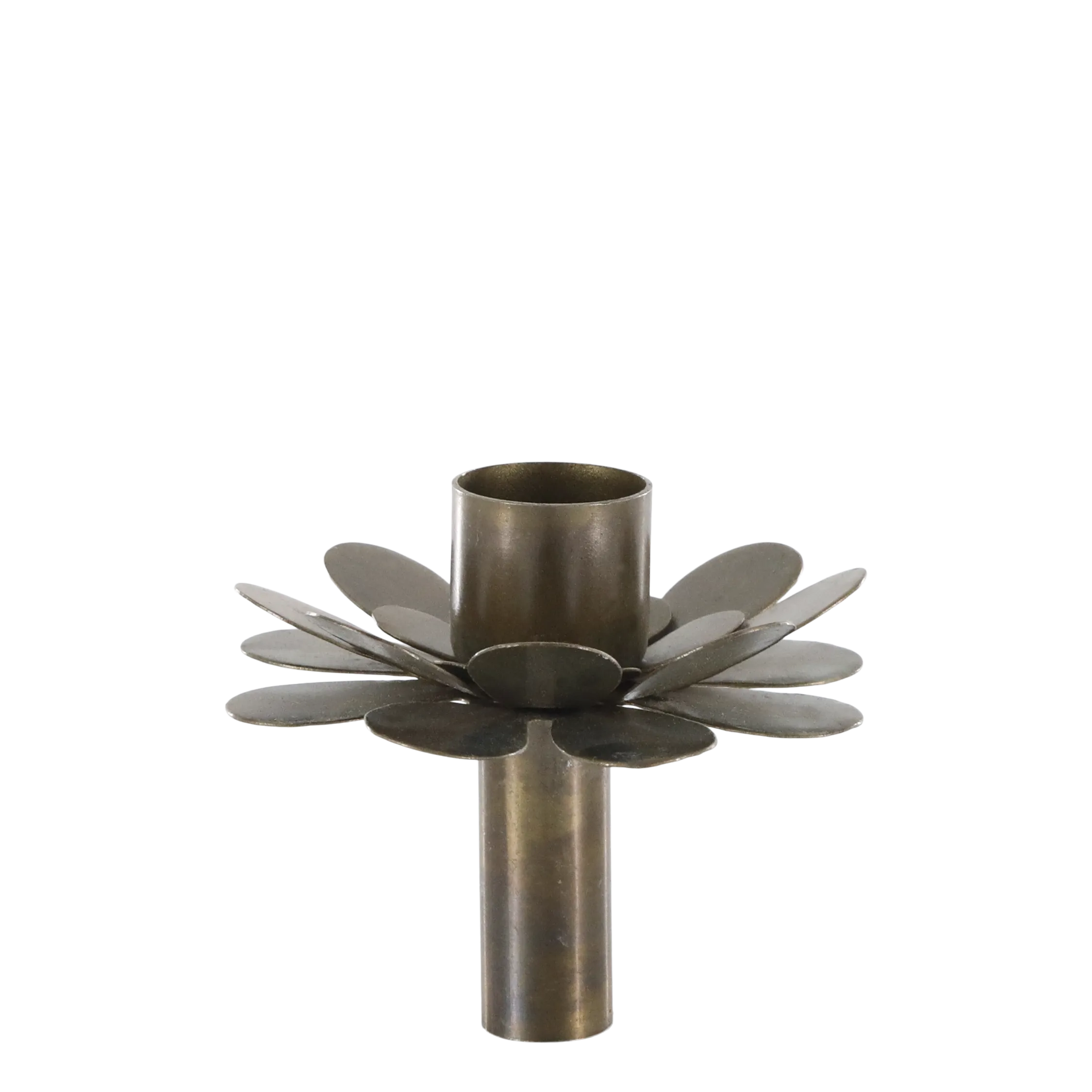 Antique brass-tone candlestick for bottle | ⌀7.5 x 7 cm
