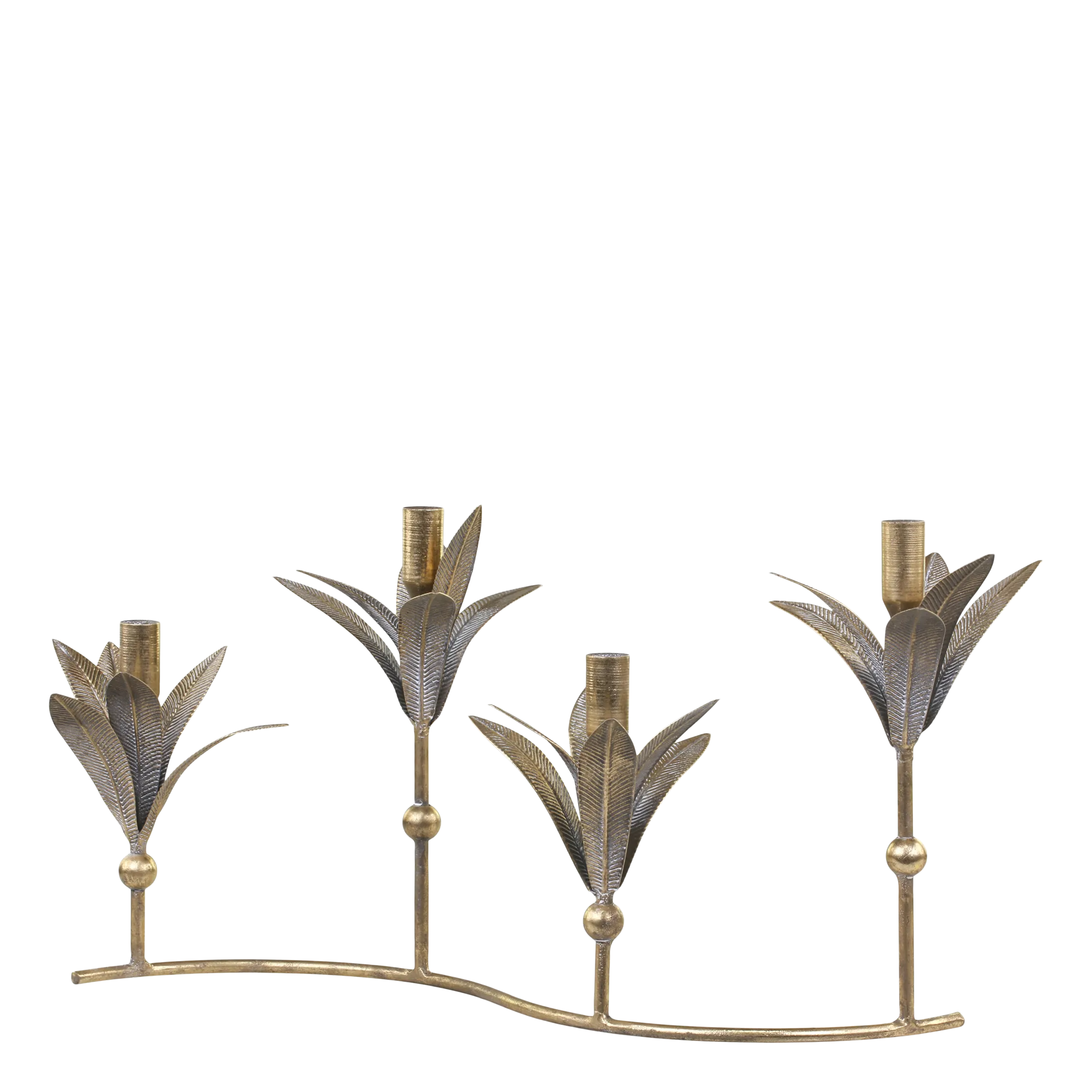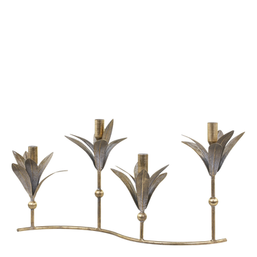A striking candle holder made of iron in an antique brass tone with space for four candles. Combine with sconces or crown candles. Best suited for candles with a diameter of 2 cm.