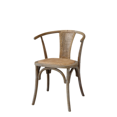 The wooden parts of the chair are white-treated, providing a beautiful contrast to the rattan.