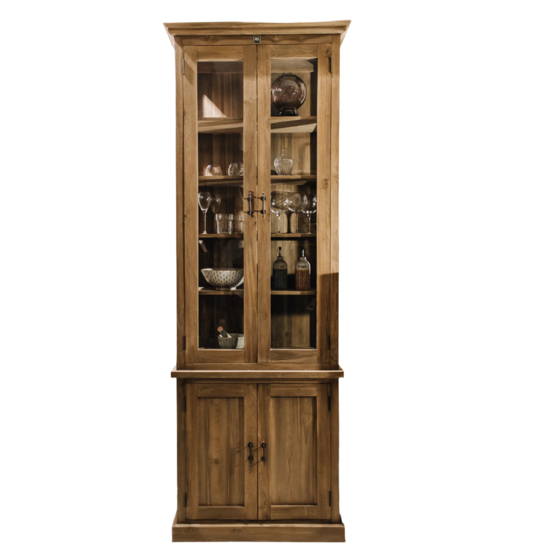 Recycled teak wood-colored glass display case | 80 x 35 x 225cm | Taranto