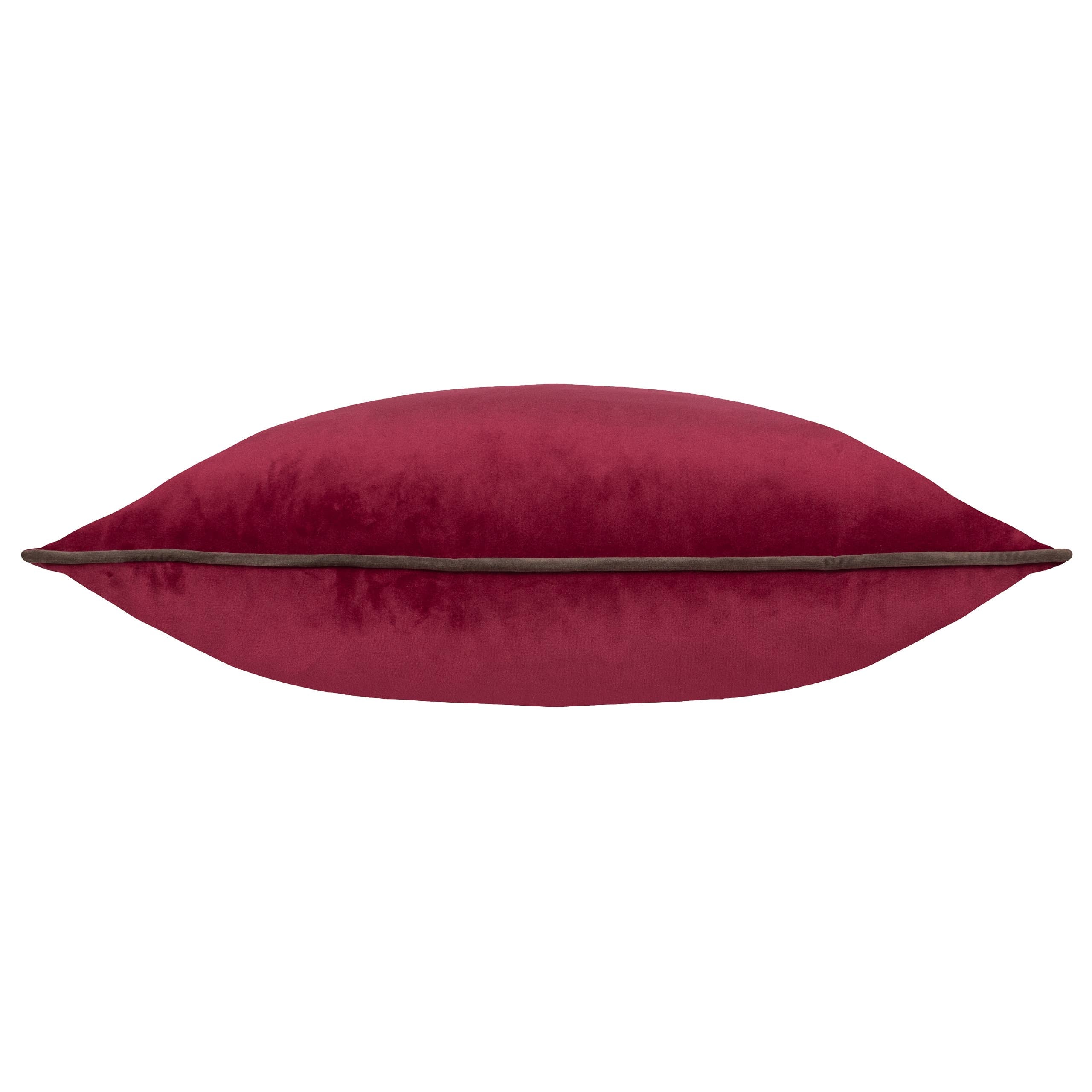 Pehmeääkin pehmeämpi samettikangas, upea krapalonpunainen sävy ja tummanruskeat tereet tekevät tästä sisustustyynyliinasta täydellisen sohvatyynyn.