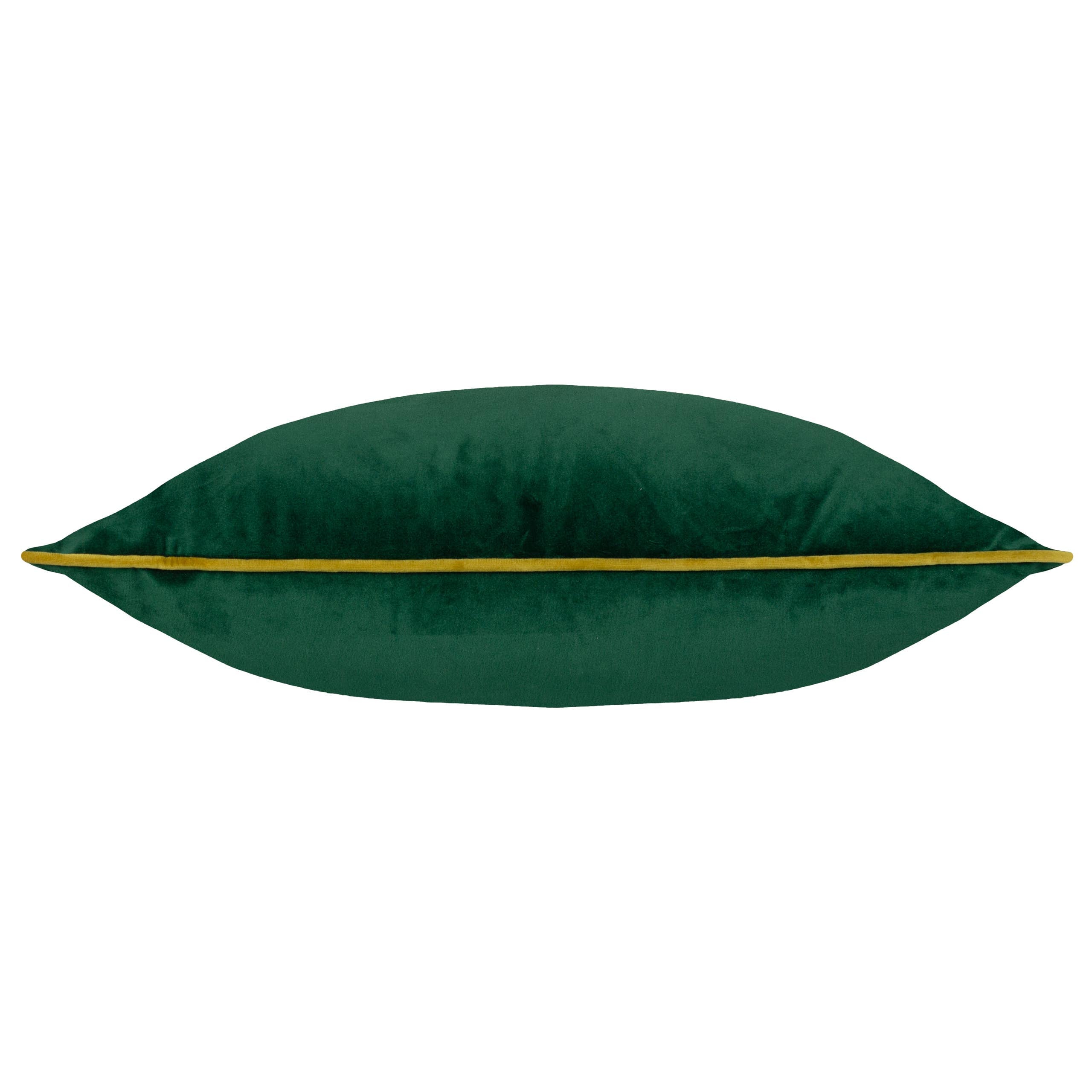 Pehmeääkin pehmeämpi samettikangas, upea smaragdinvihreä sävy, kullankeltainen koristekirjailu sekä kullankeltaiset tereet tekevät tästä sisustustyynyliinasta täydellisen sohvatyynyn.
