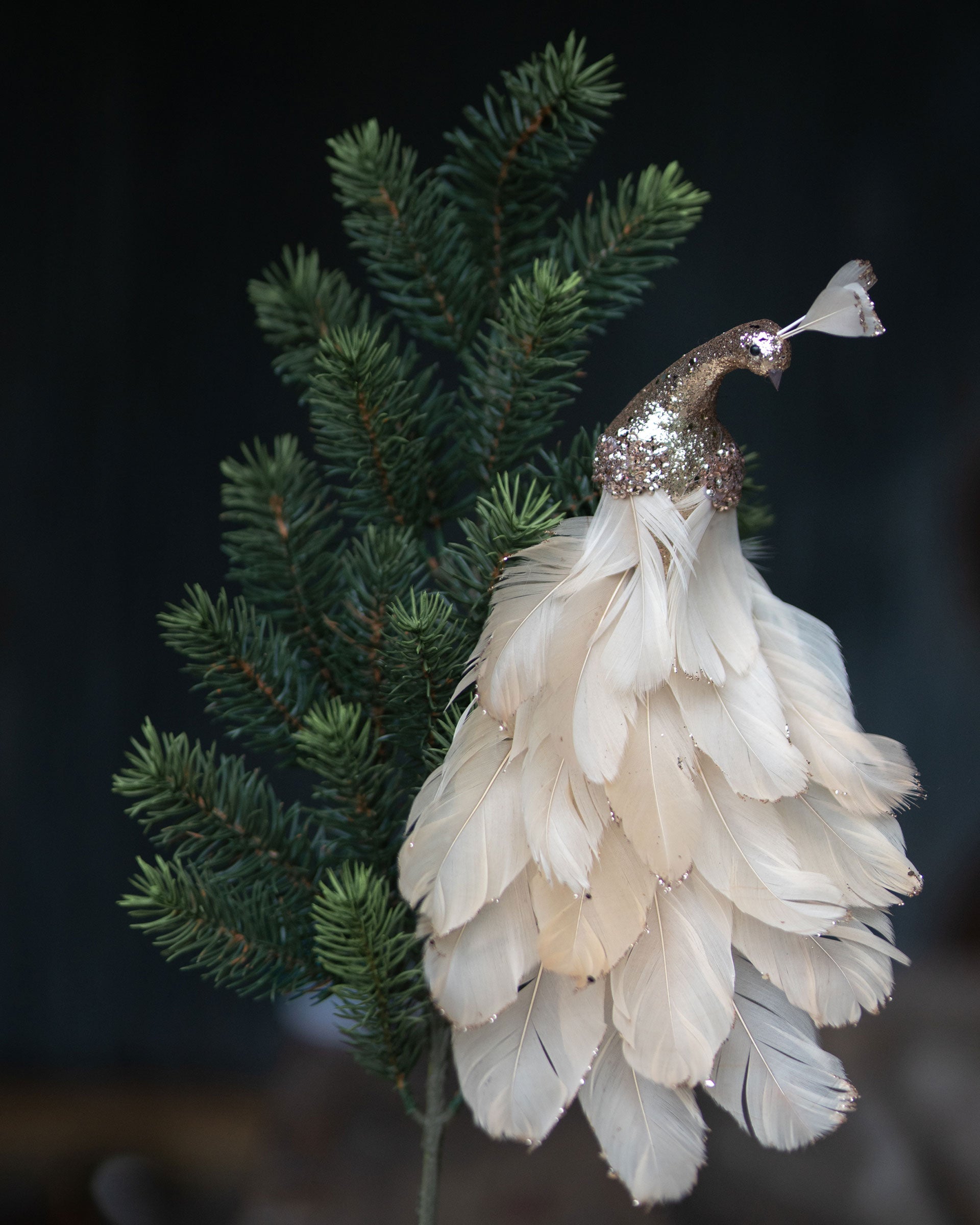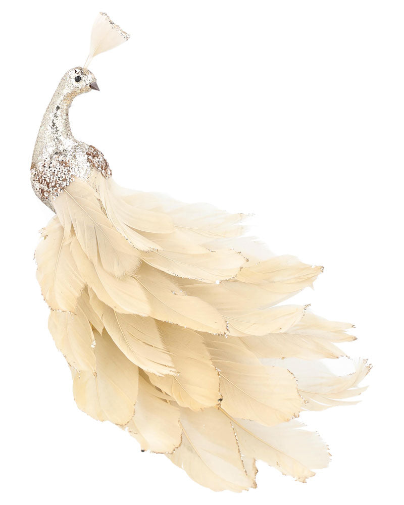 Fluttering with beautifully colored feathers and sparkling with glitter, this peacock is a striking bird-themed decoration. It attaches with a handy metal clip and will complete the decoration of a Christmas tree, wreath or bouquet.