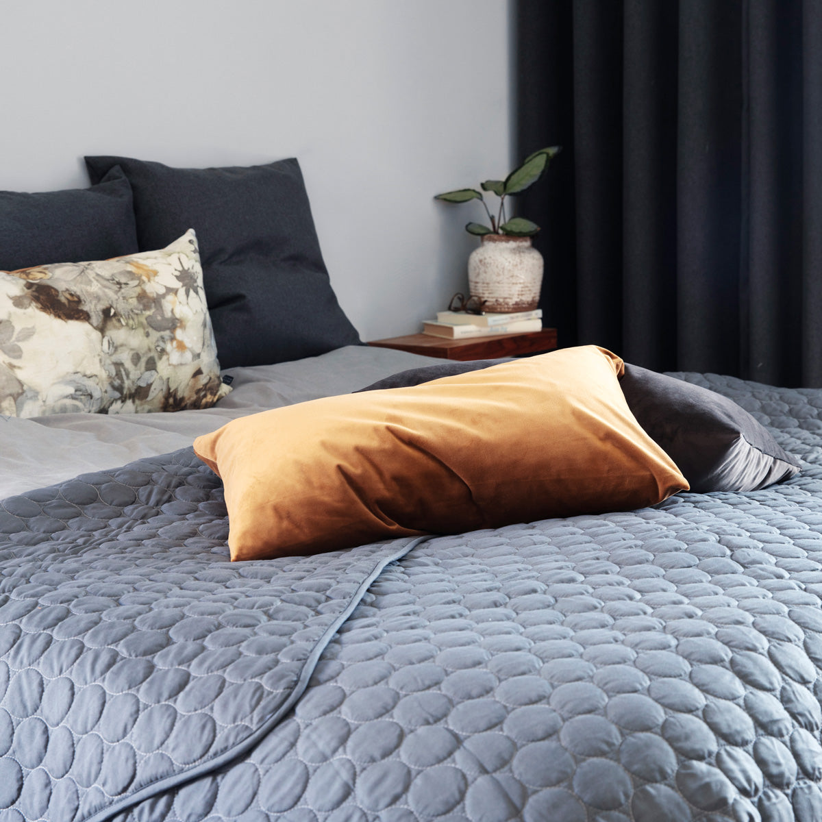 The easy-care polyester bedspread is lightweight and machine washable at 40 degrees.