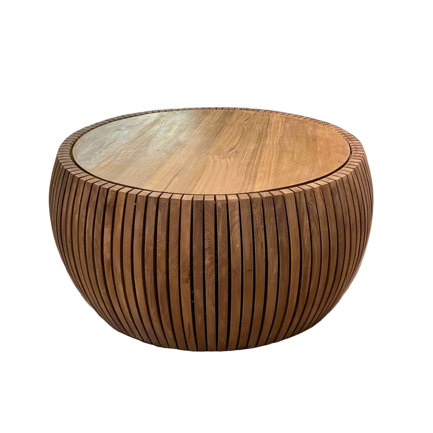 Sisätiloissa tiikkihuonekalun tärkein hoitotoimenpide on tasainen huoneilman kosteus, erityisesti talvikaudella. Suosittelemme pitämään kosteuden noin 35–45 % tasolla ilmankostuttimen avulla – puuta ei tule kostuttaa suihkuttamalla. Mahdolliset pienet halkeamat ovat normaaleja; ne ovat yleensä esteettisiä ja voidaan haluttaessa paikata puukitillä huollon yhteydessä.
