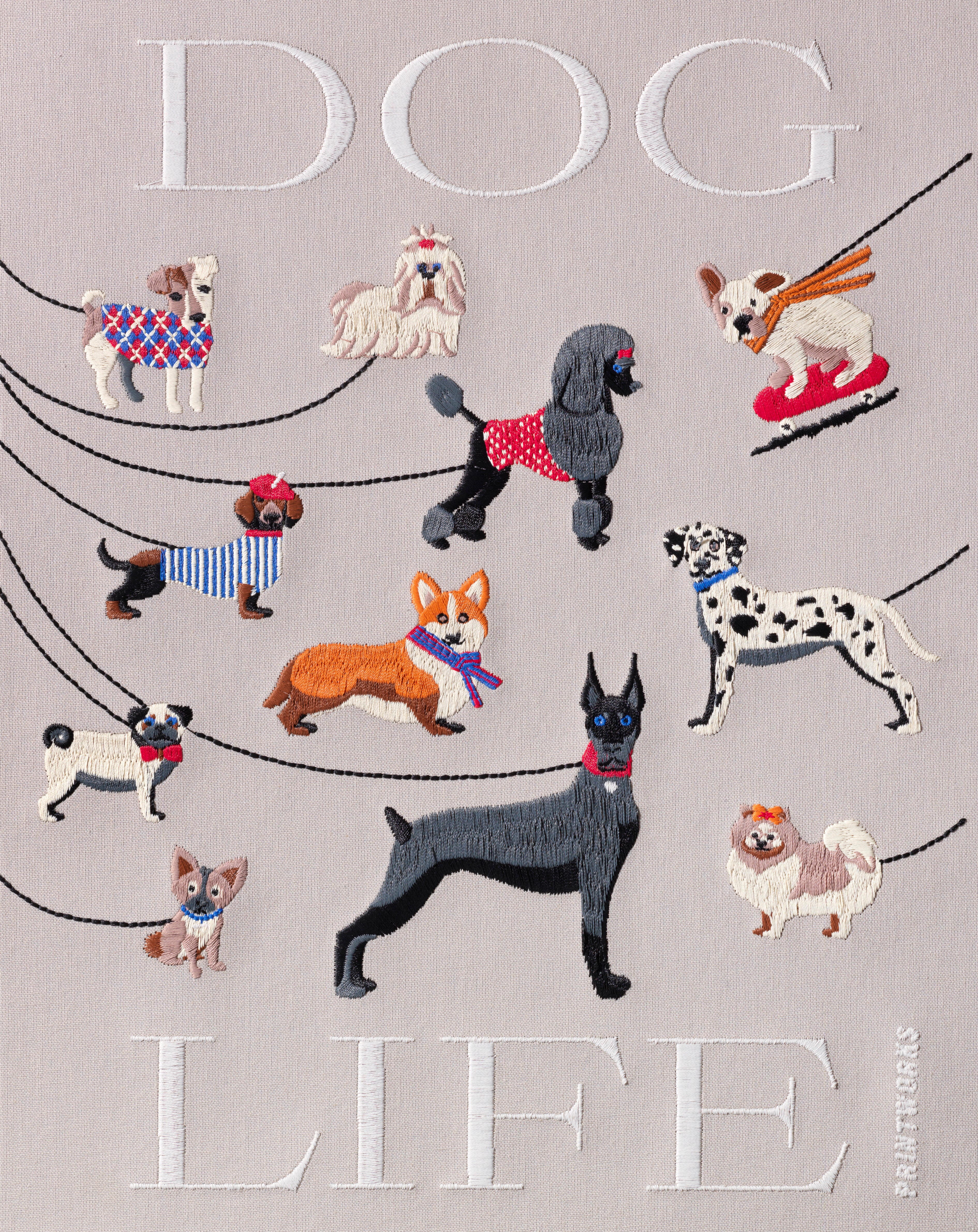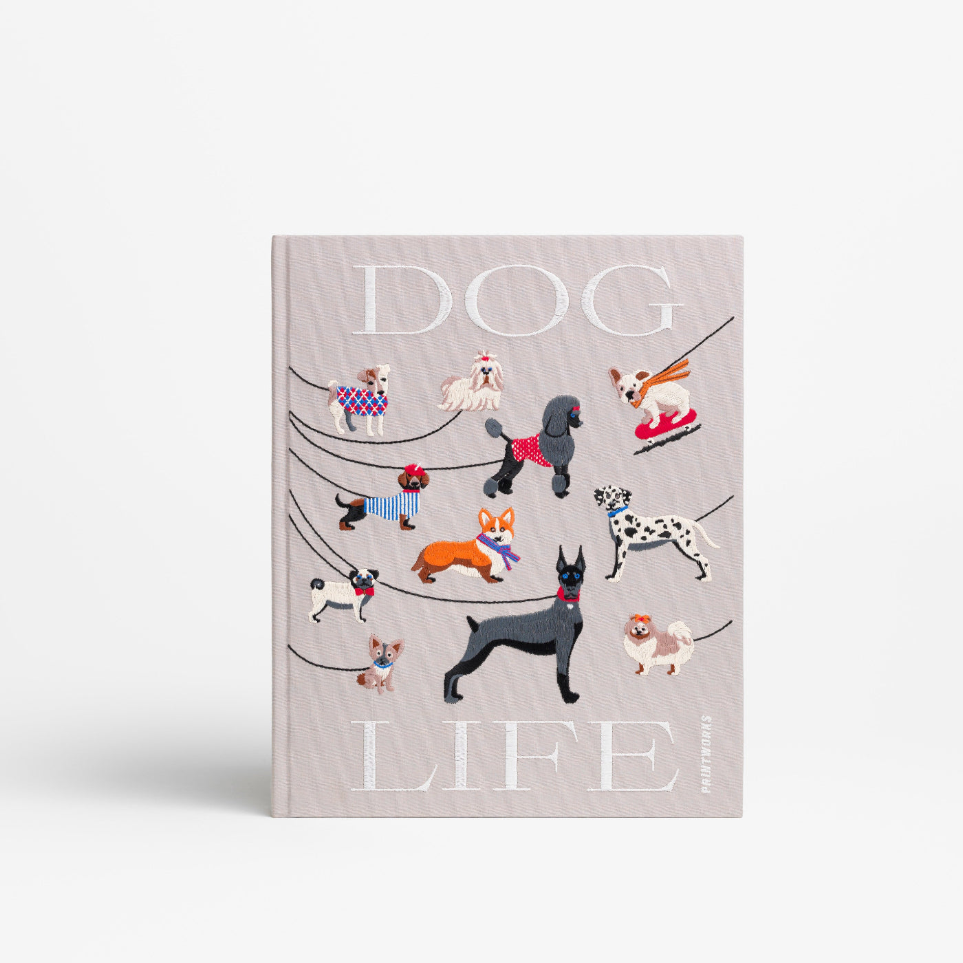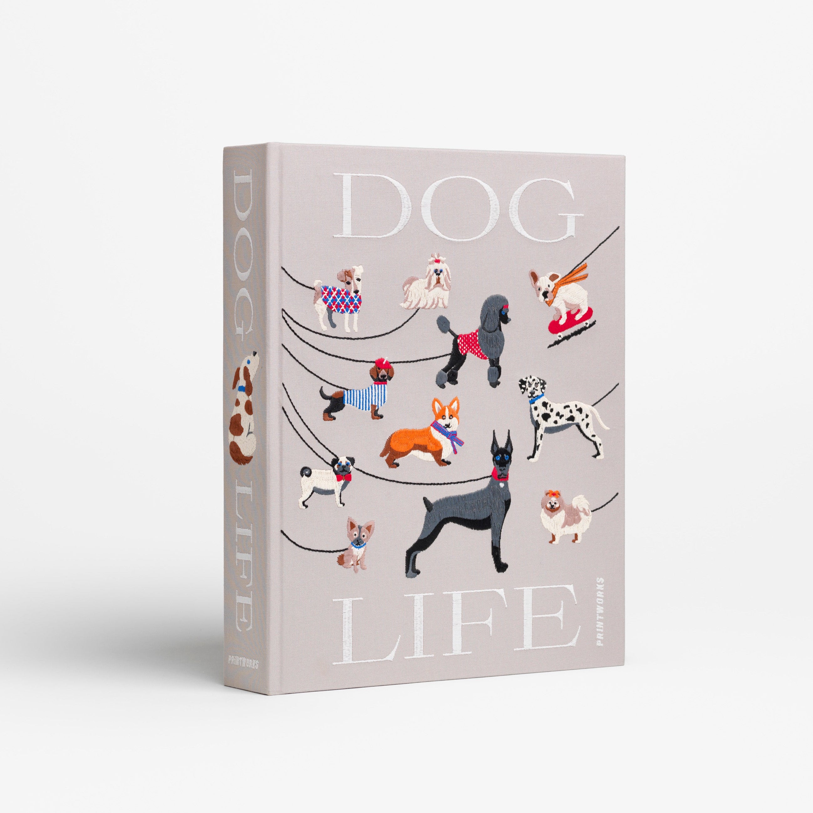 Greige kirjailtu valokuva-albumi | 33 x 27 x 5,4 cm | Dog Life