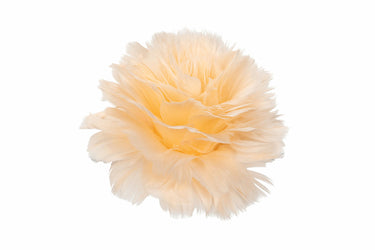 Aprikoosin sävyinen sulkakukka on kaunis koriste pääsiäiskranssiin tai pajunoksaan. Kukka on valmistettu sulista. Kätevä klipsikiinnitys.