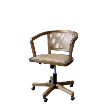 Tyylikäs rottinkinen kotitoimistotuoli sopii hyvin maalaisromanttiseen ja rustiikkiseen sisustukseen. Tuolissa on pyörät alla ja istuinkorkeus on säädettävissä 43 cm - 54 cm.