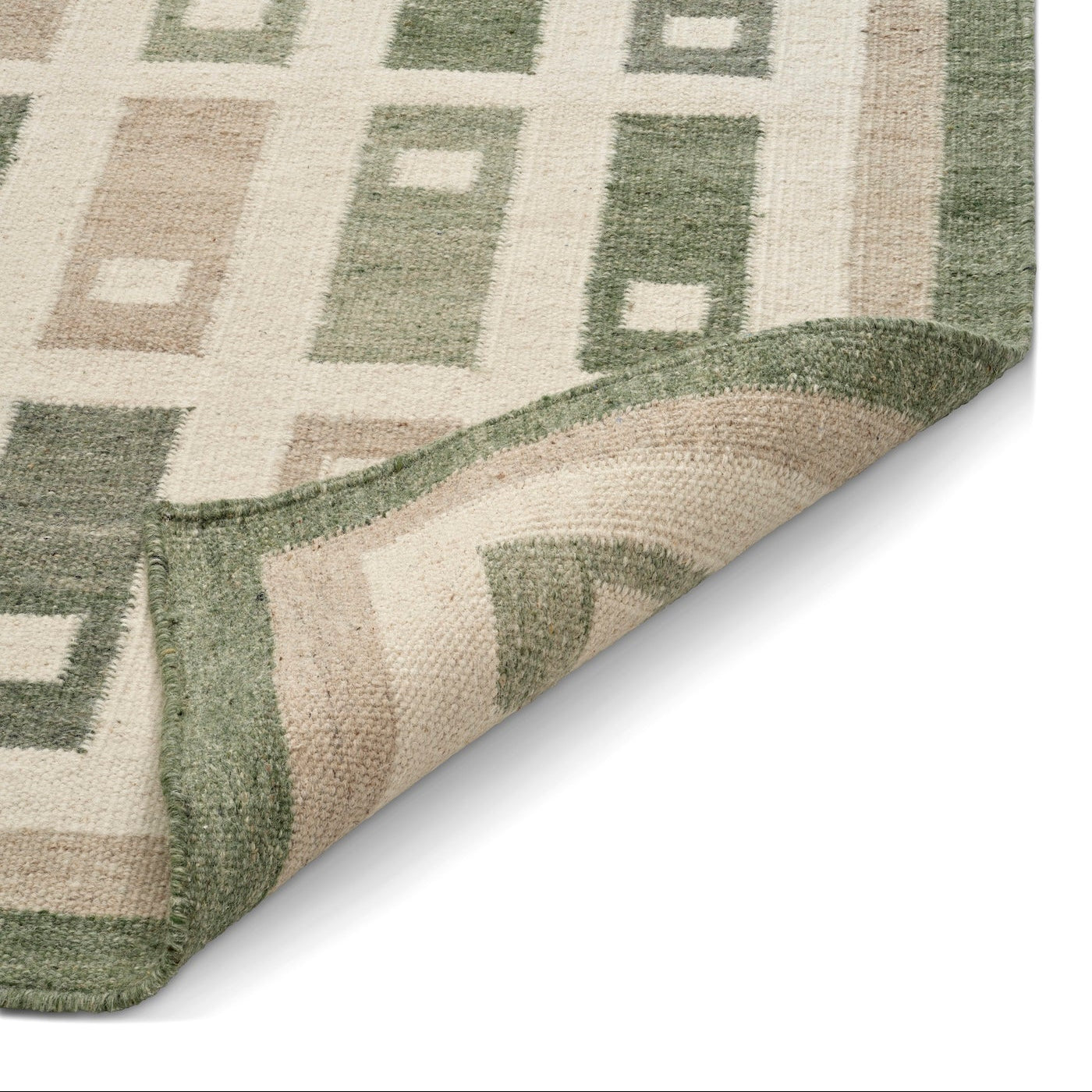 Käännettävä tasokudottu rakenne tekee matosta käytännöllisen ja helpon sijoittaa myös kalusteiden alle.
