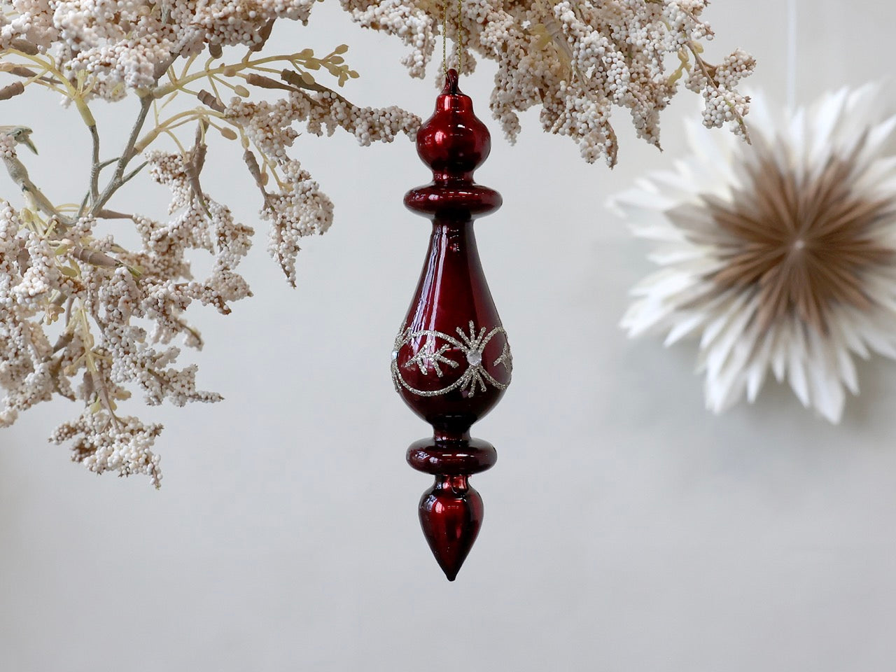 Kirsikanpunainen lasinen joulukoriste | Ø4,5 x 17cm