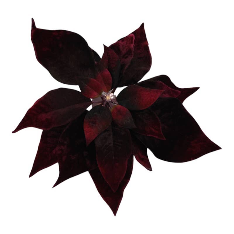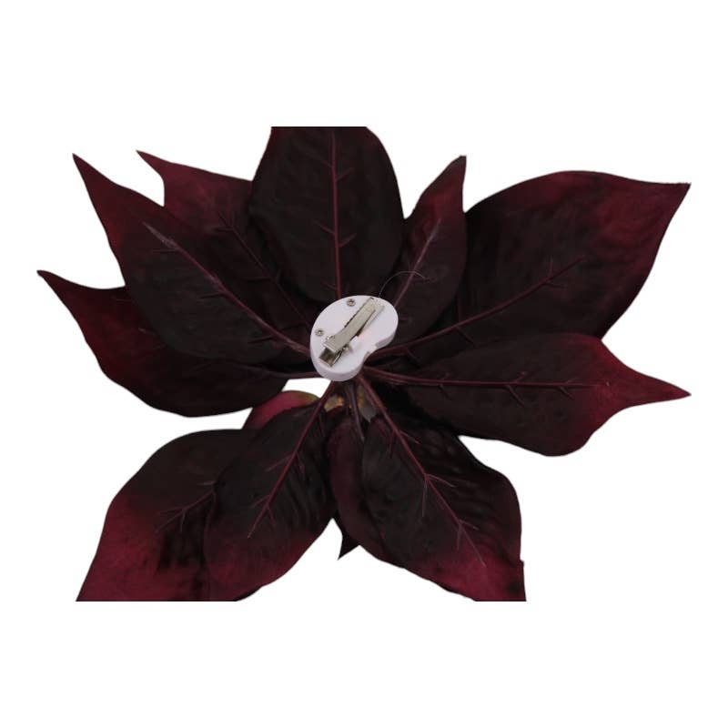 Samettinen tummanpunainen Joulutähti-kestokukka on kaunis kuusenkoriste ja sopii myös kranssin koristeeksi. Kukassa on klipsu jolla se on helppo kiinnittää. Kukan heteet ovat led-valonauhaa, joten tähän kauniiseen kukkaan voi sytyttää jouluvalon. Mukana 3 paristoa.