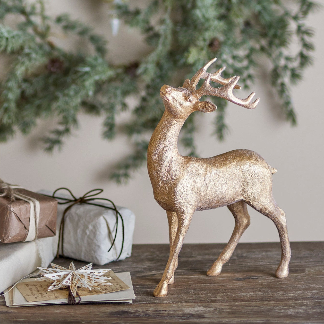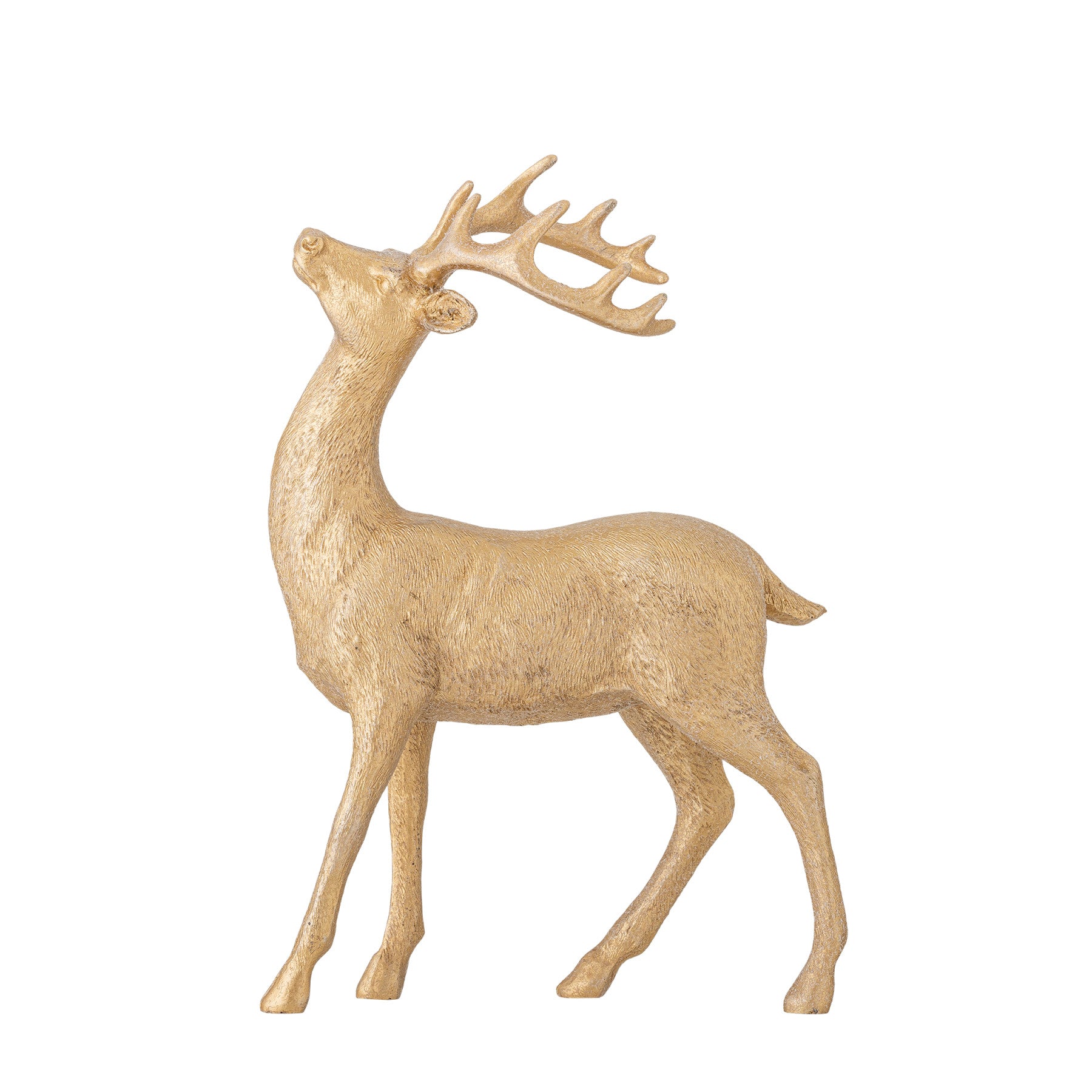 Näyttävä mattakullanvärinen peura on täydellinen lisä joulukoristeluun. Peuran pinta on nukkamainen.