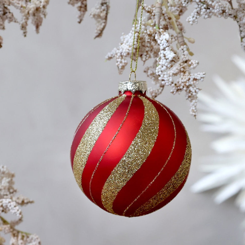 Punakultaraidallinen lasinen joulupallo | Ø10 cm